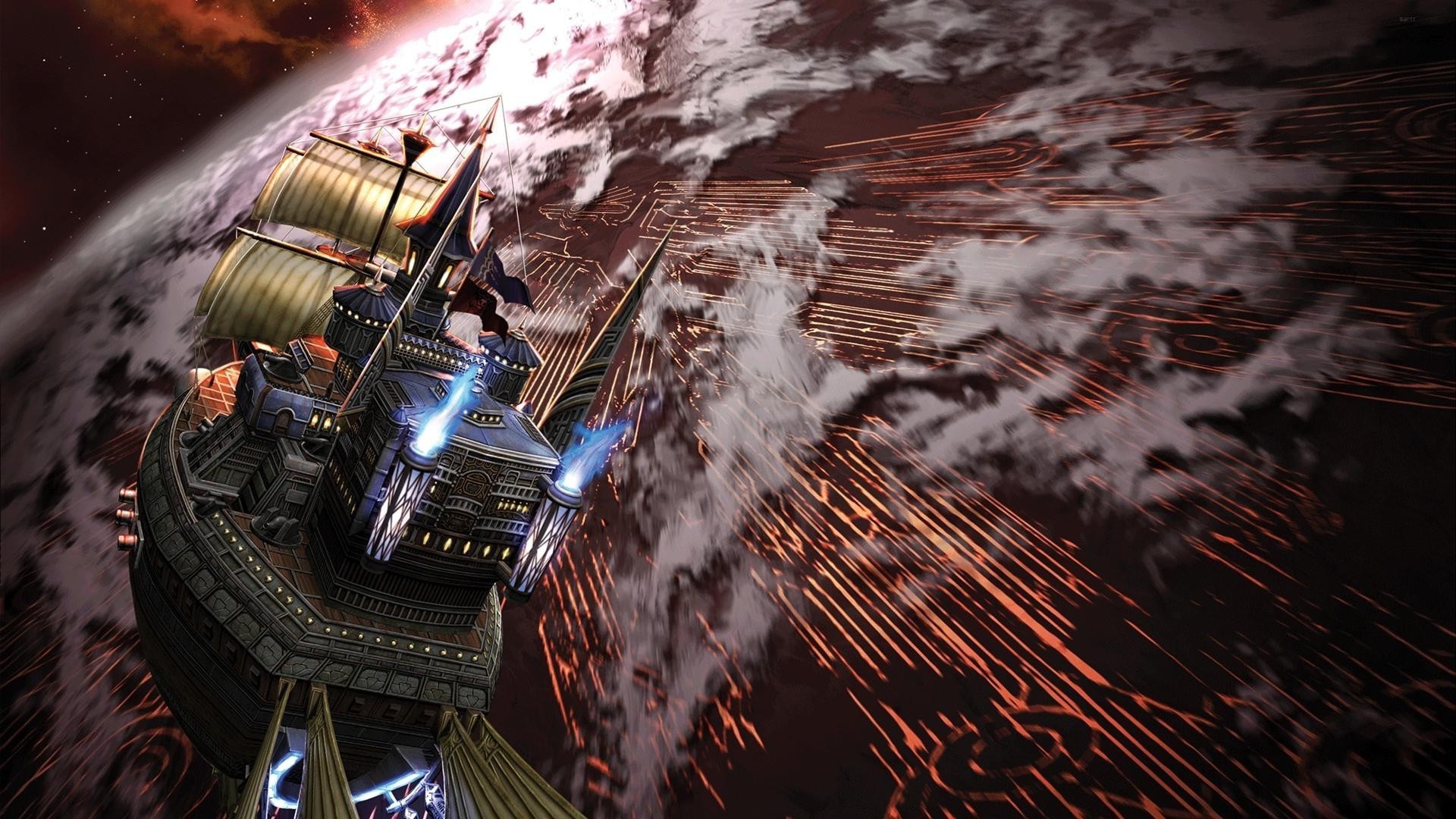 Barco en el fondo del cielo de la tarde con puesta de solBarco en el fondo del cielo de la tarde con puesta de sol