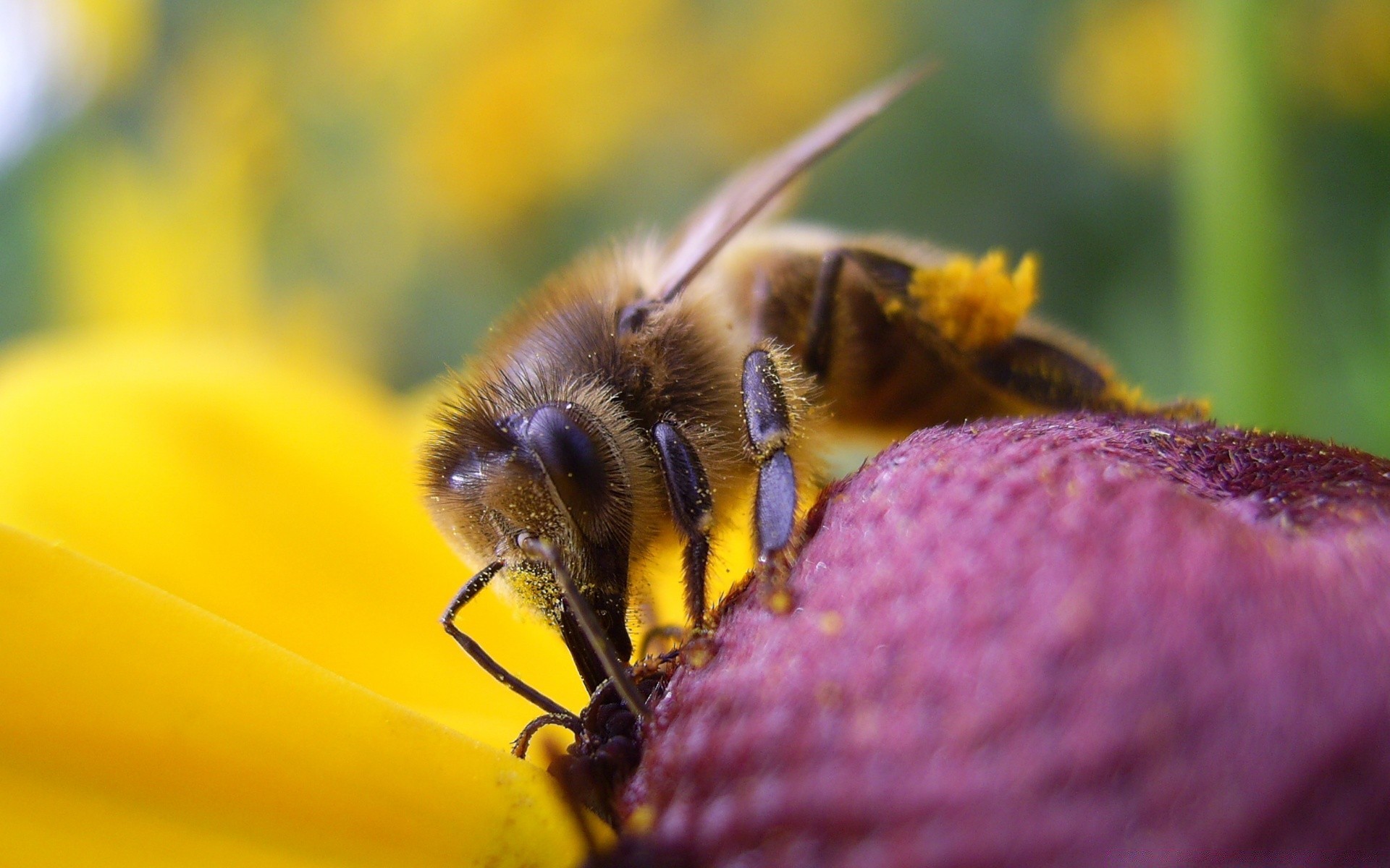 Abejorro sentado en una baya púrpura