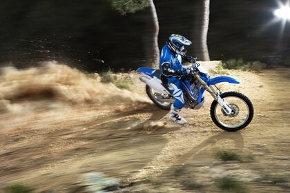 Motociclista en casco fuera de carretera