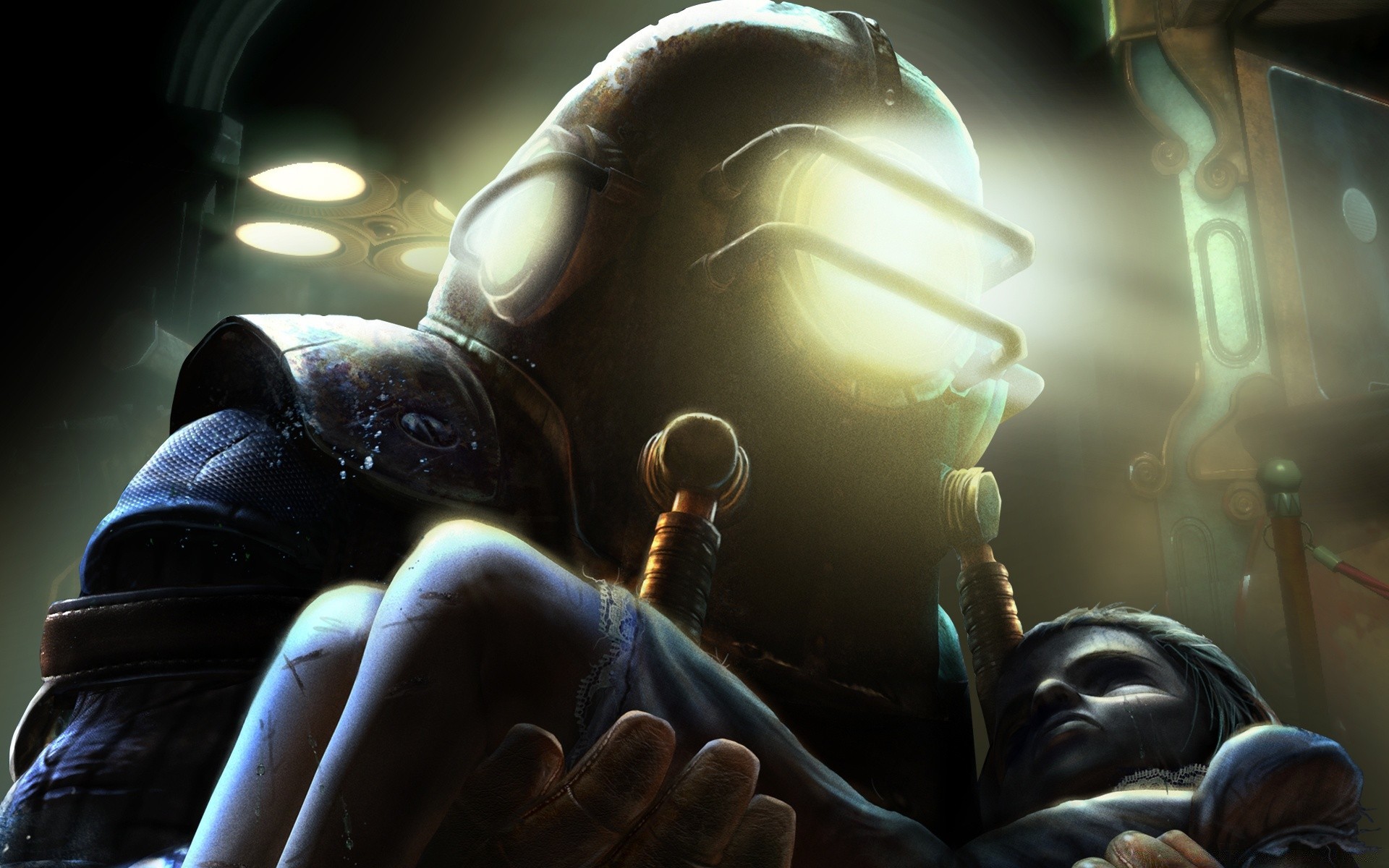Una criatura en un traje espacial sostiene a un niño en sus brazos