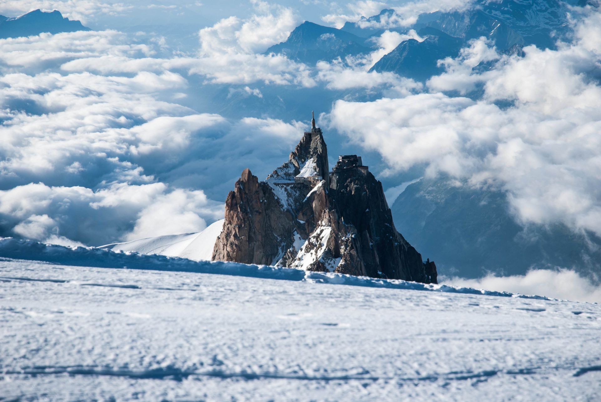 Paisaje de invierno, en medio del agua, a los lados de los árboles en la nieve