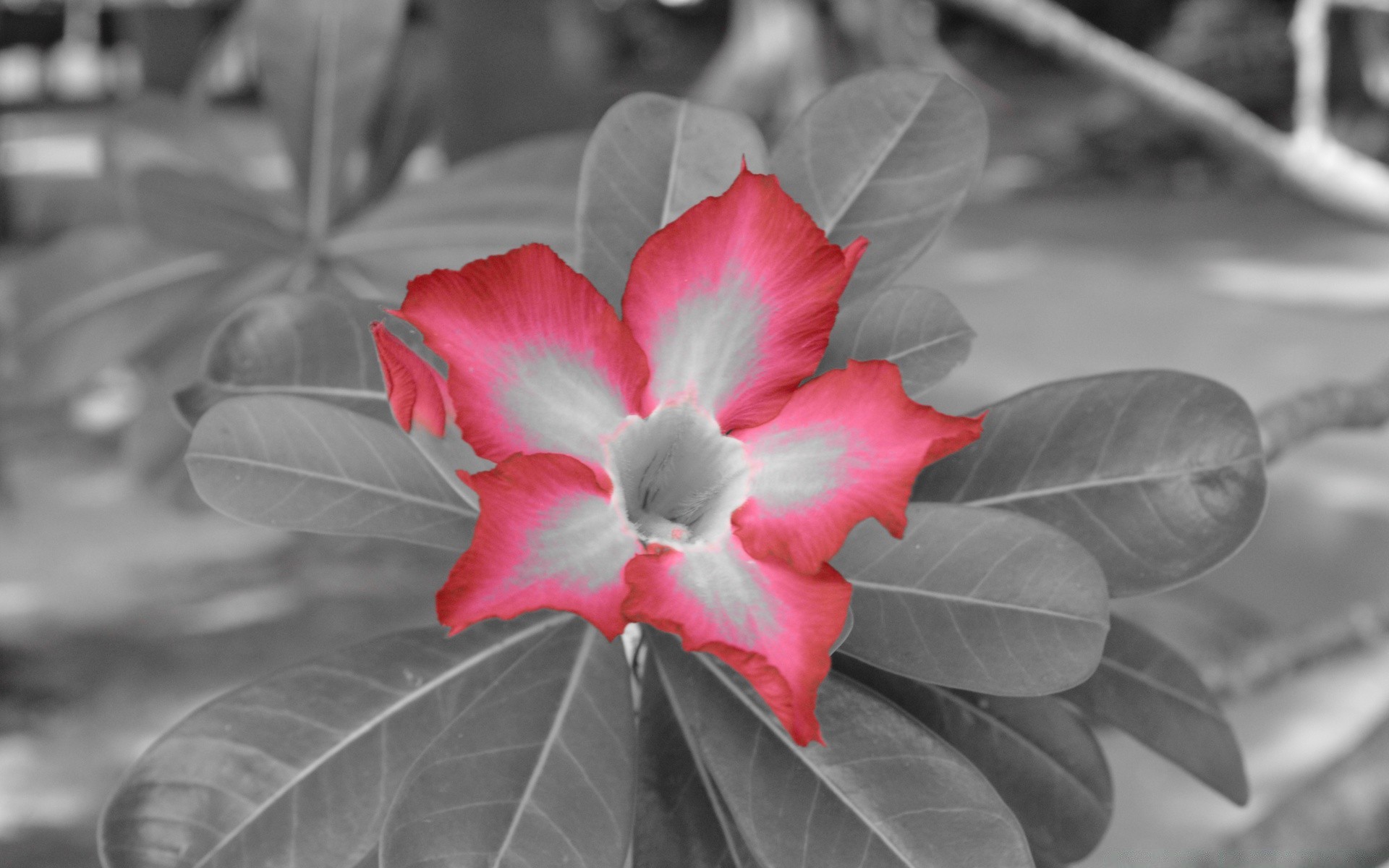 Flor escarlata en una foto en blanco y negro