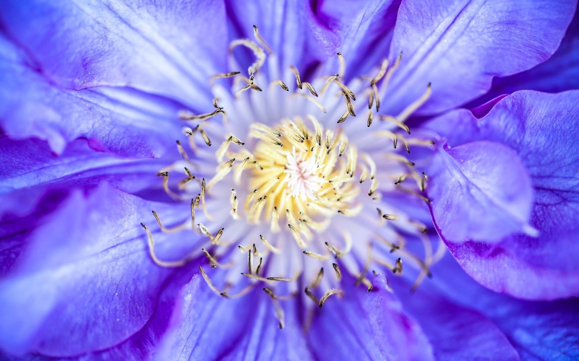 Fotografía macro del cáliz de la flor con los pétalos azulesFotografía macro del cáliz de la flor con los pétalos azules
