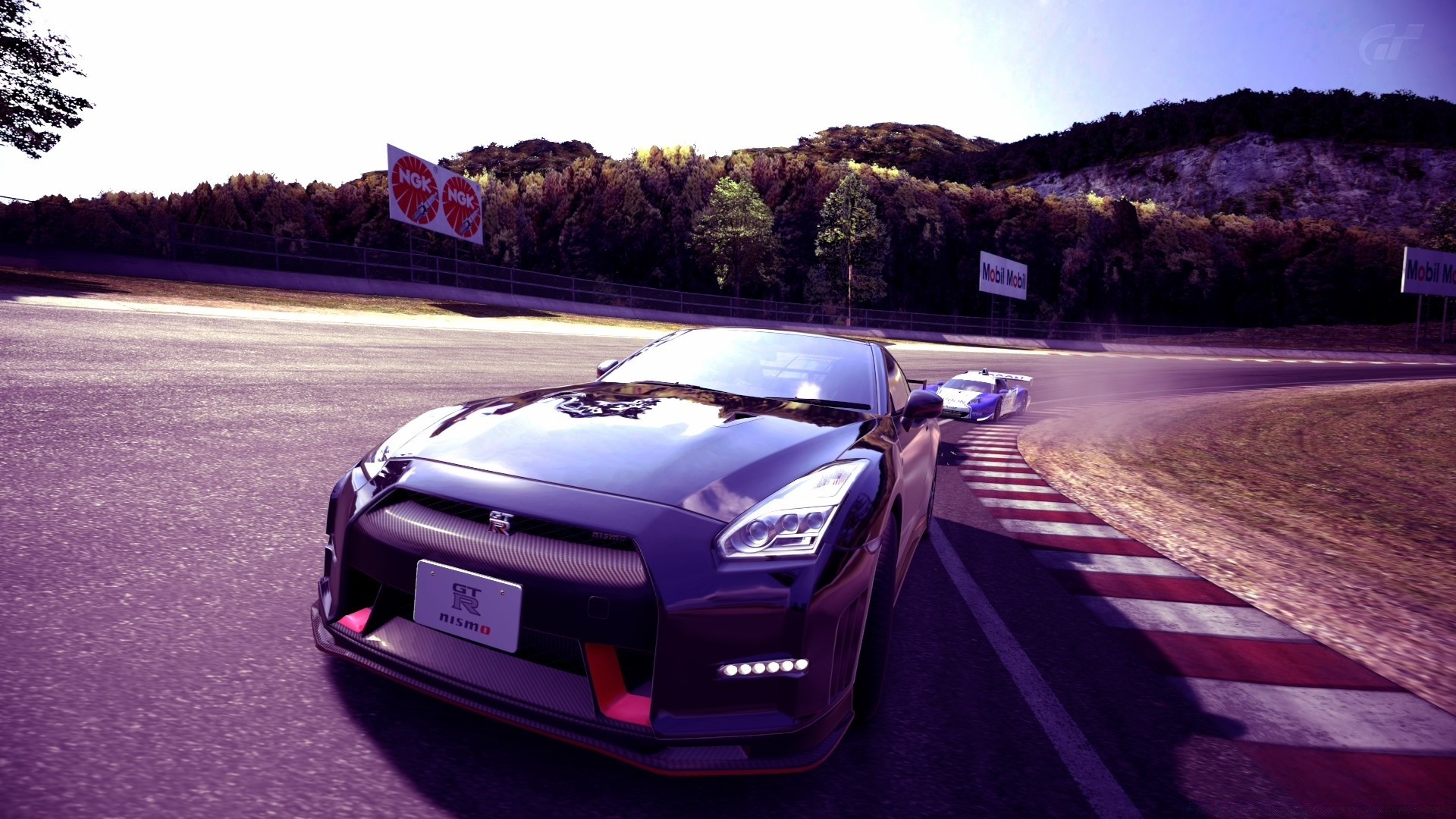 Un coche de carreras retro corre en el juego de ordenador gran turismo