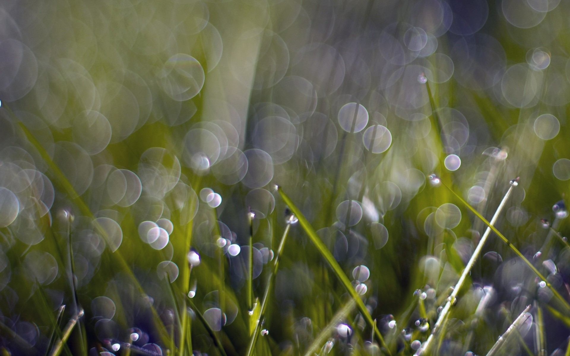 Gotas de agua brillantes sobre la hierba en tonos grises sobre un fondo borroso enGotas de agua brillantes sobre la hierba en tonos grises sobre un fondo borroso en