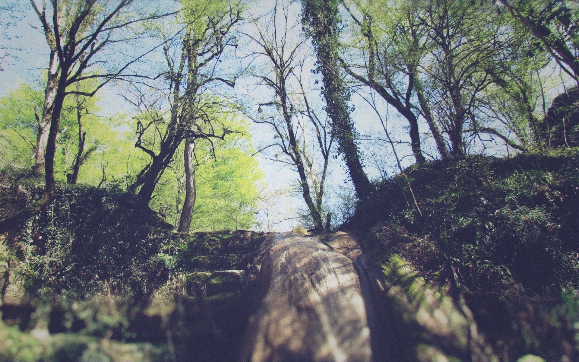 Bosque hasta el cielo. Hermoso paisaje en una ligera neblina de niebla