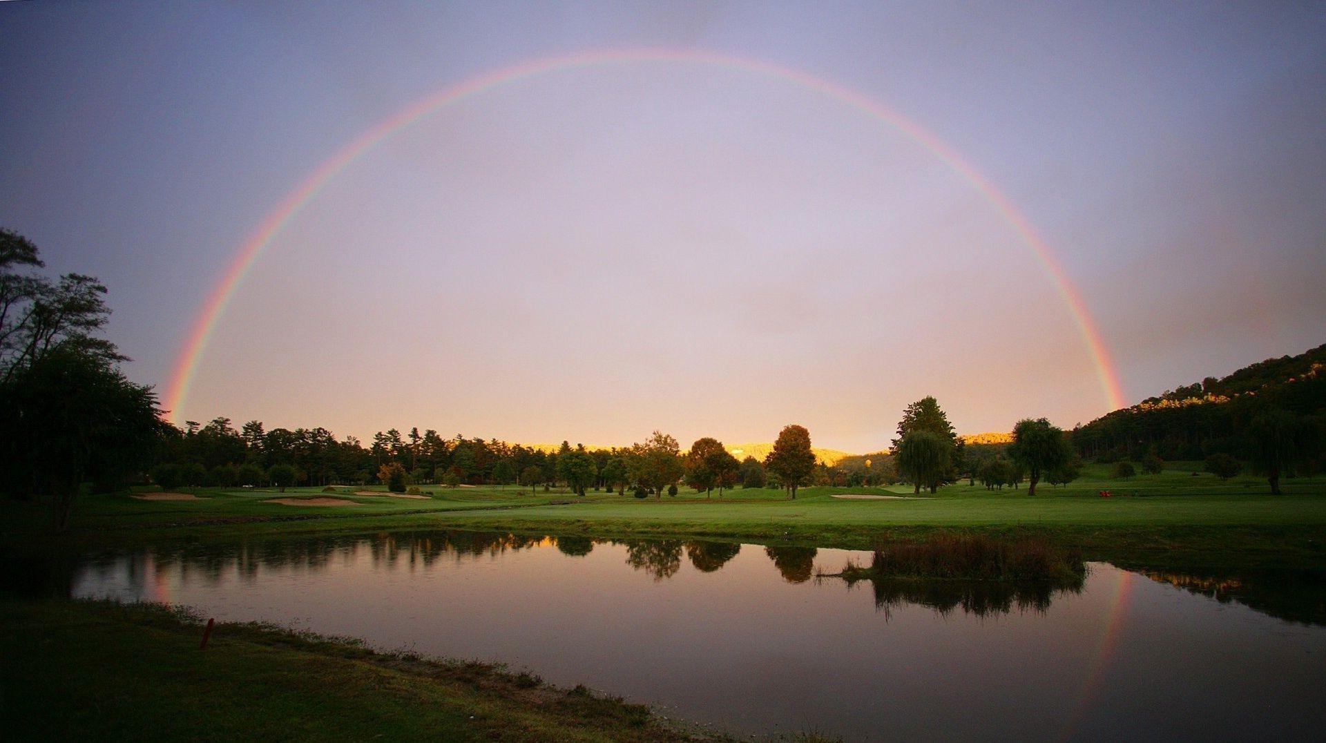 Arco multicolor en el fondo del bosque