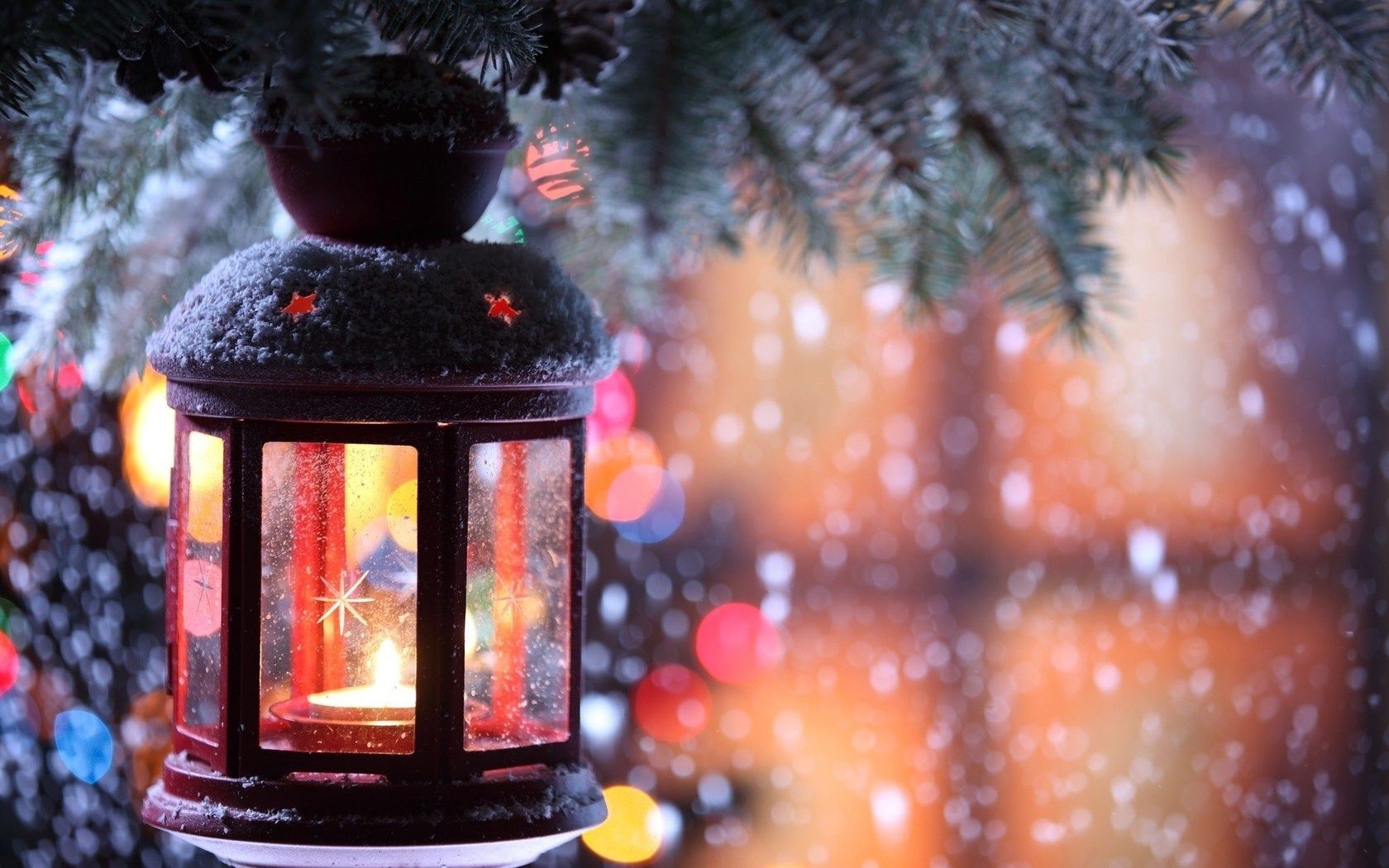 Año nuevo, linterna y nieve