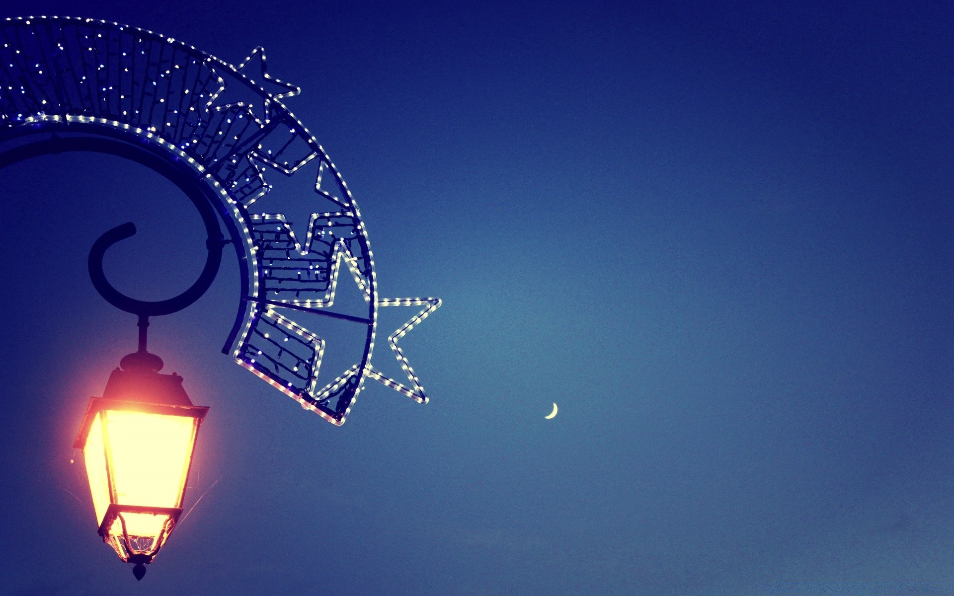 Una pequeña linterna brilla una Luna creciente en respuesta