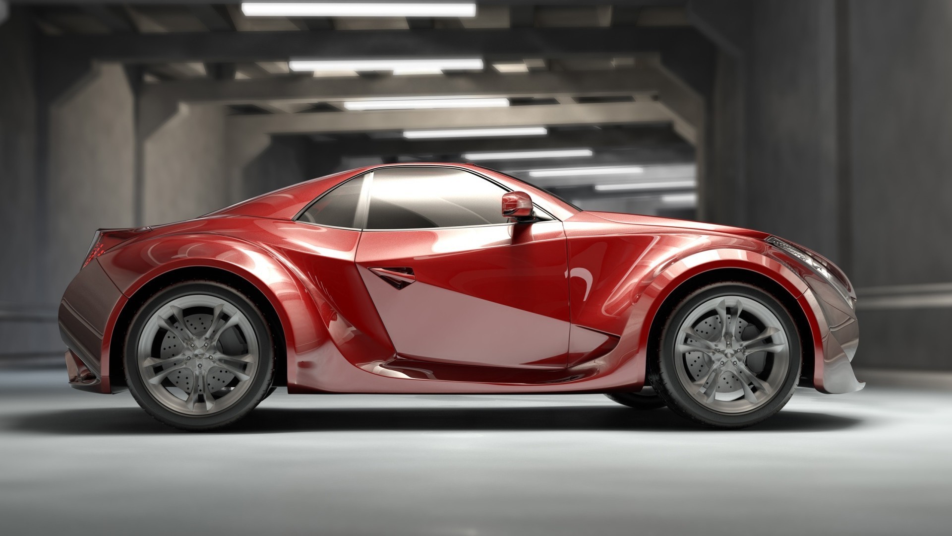 Coche de carreras deportivo negro en el fondo de edificios altos