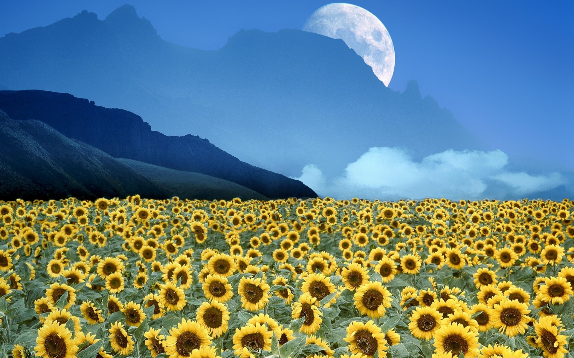 Campo de girasoles. Cielo azul