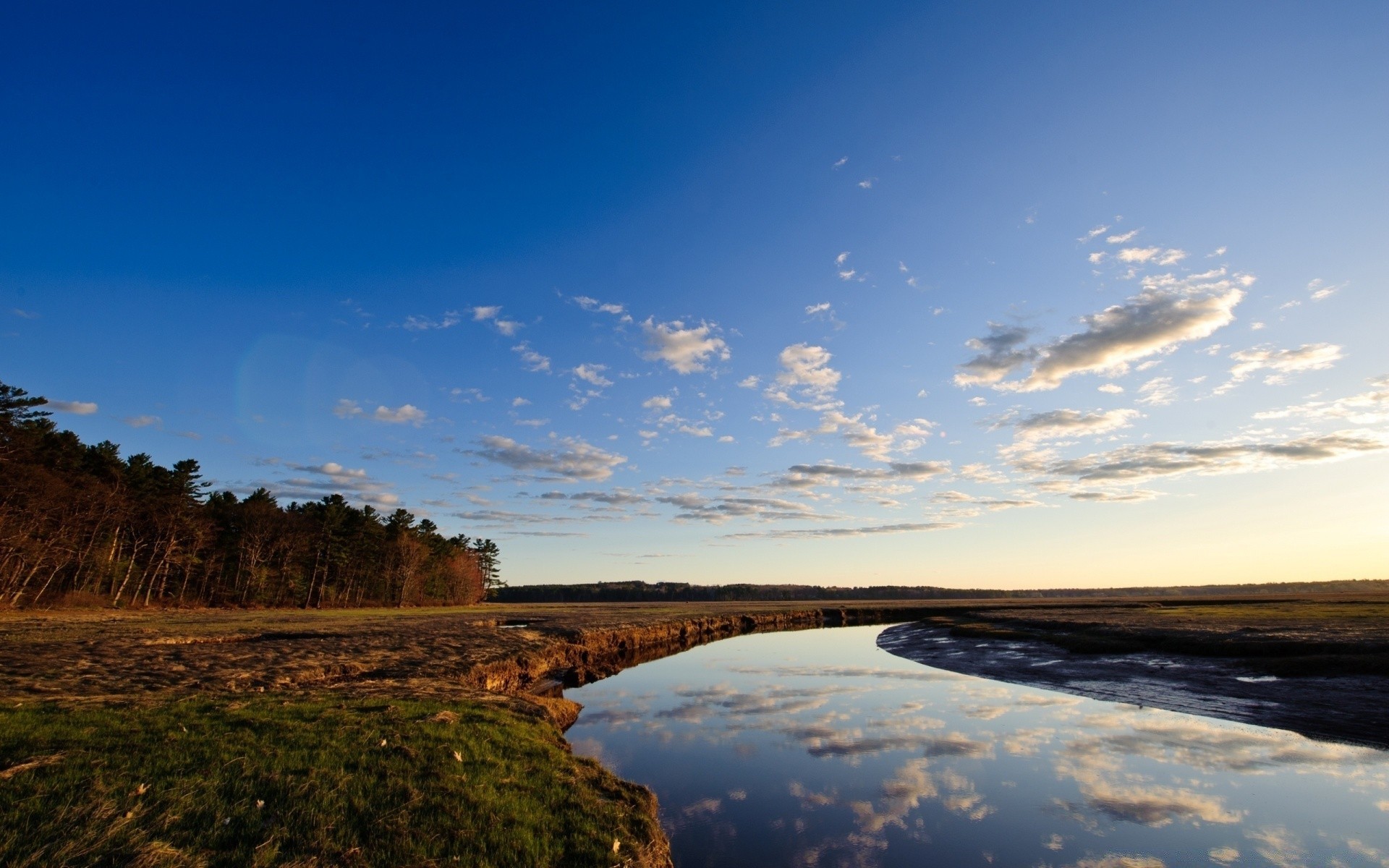 Paisaje puesta de sol en medio de campos verdes y montañas