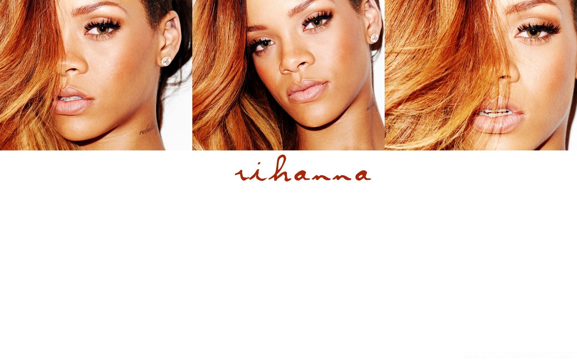 Retrato de la cantante Rihanna sobre fondo rosa