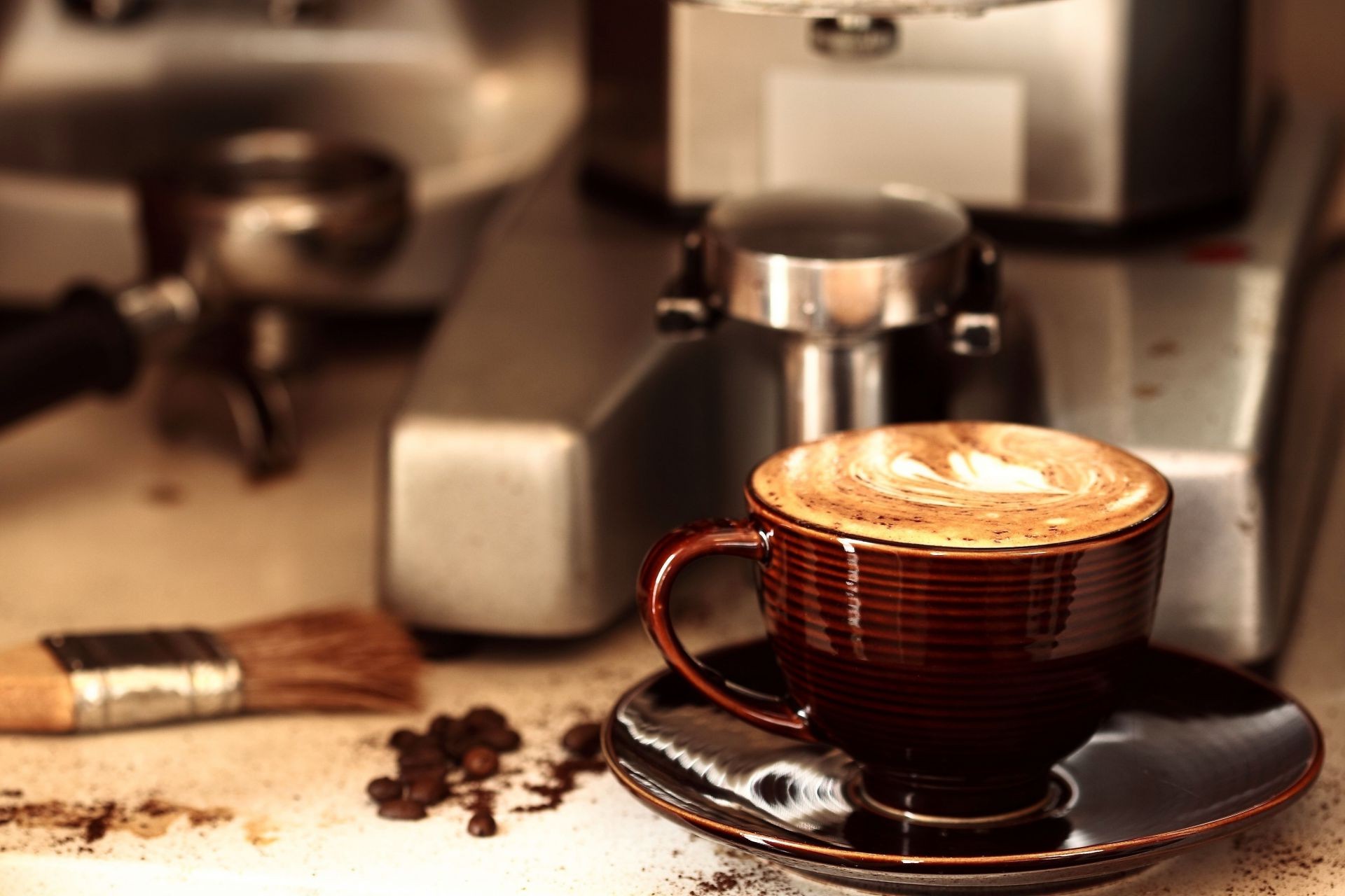 Taza de café de terracota con espuma