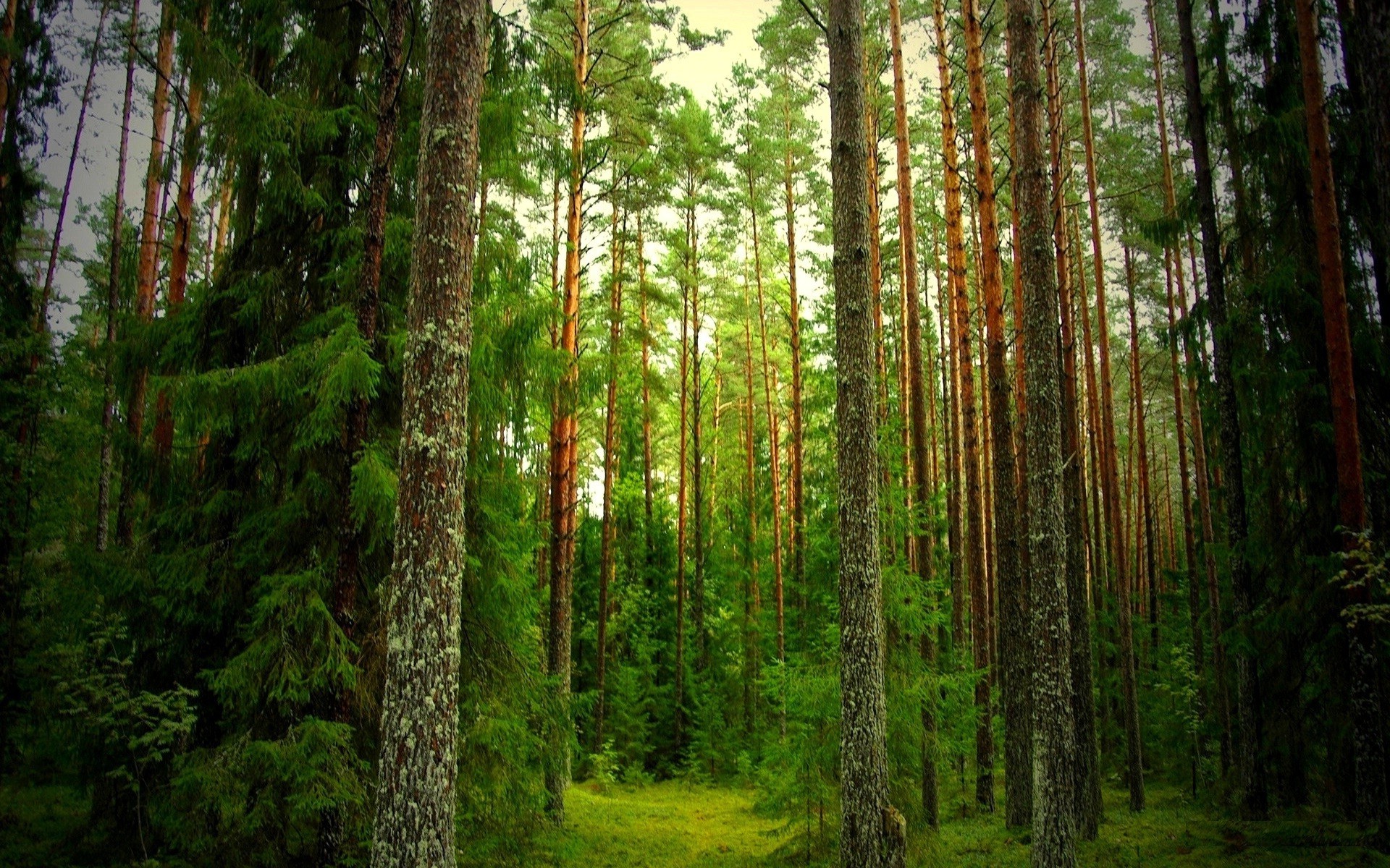 Bosque de coníferas verde brillante