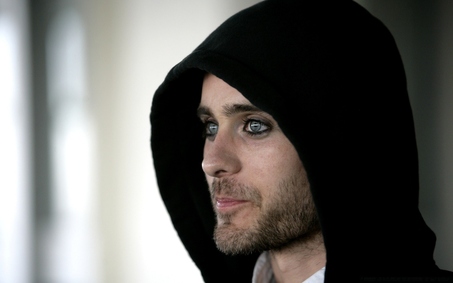 Cabeza de hombre con capucha negra