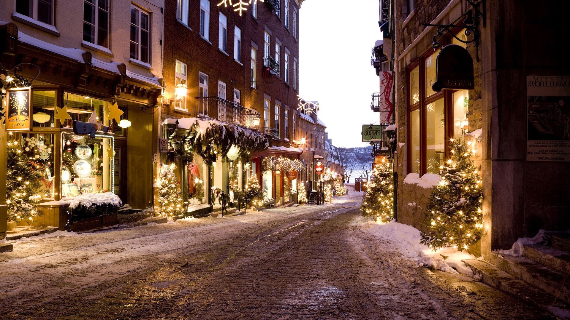 Calle carril carretera casas invierno árboles año nuevo Navidad