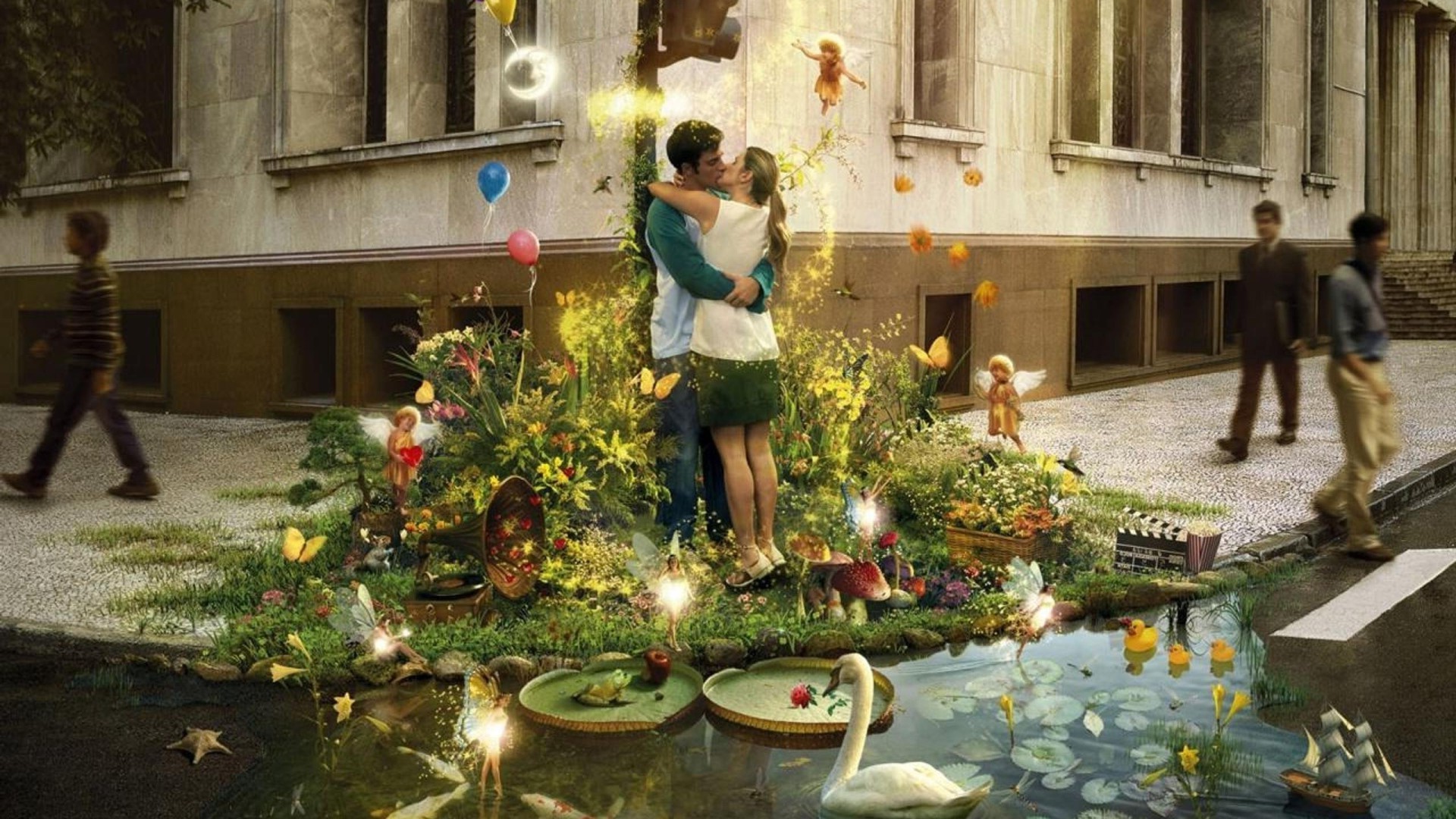 Pareja se toma de la mano en una sesión de fotos en el campo