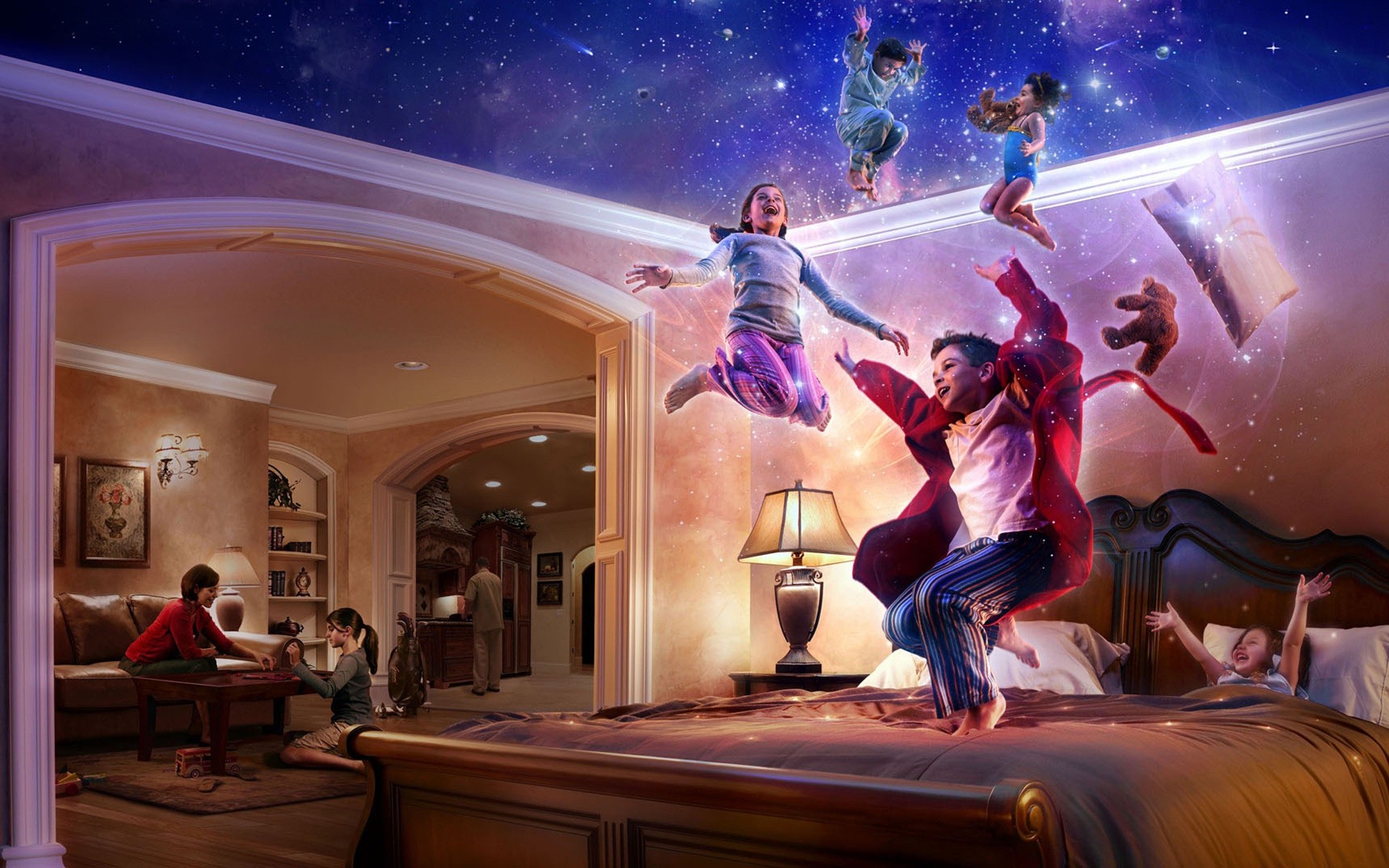 Una divertida noche de fantasía en una casa con niños