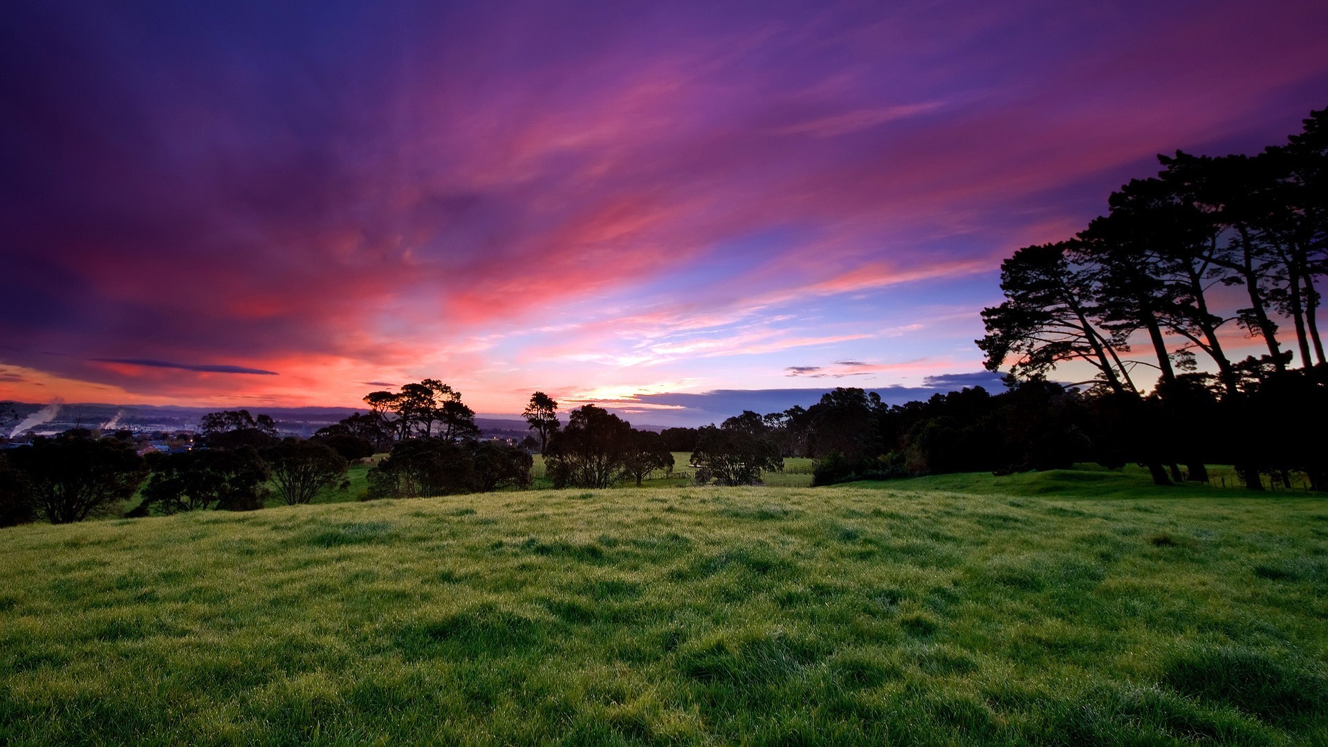 Coche blanco en el fondo de la ciudad de la puesta del sol