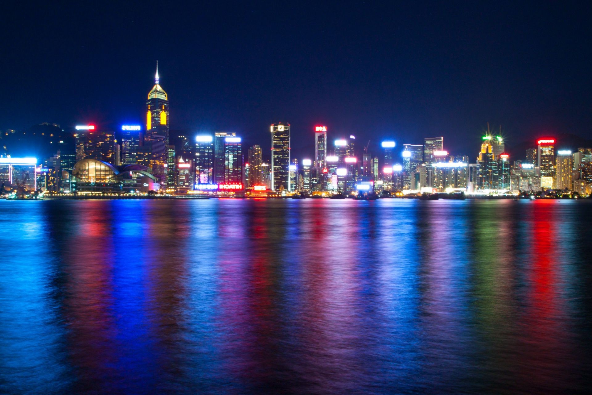 Reflejo de las luces de la ciudad nocturna en el agua