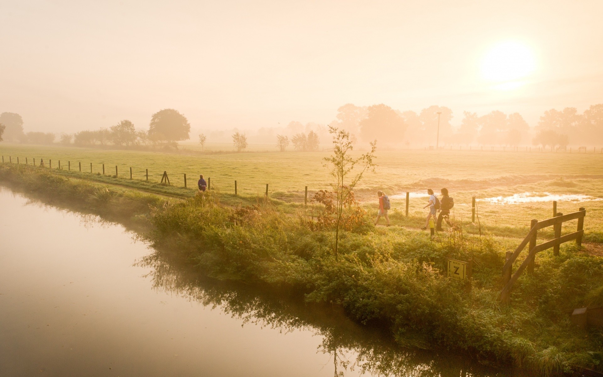 La gente camina a lo largo del agua