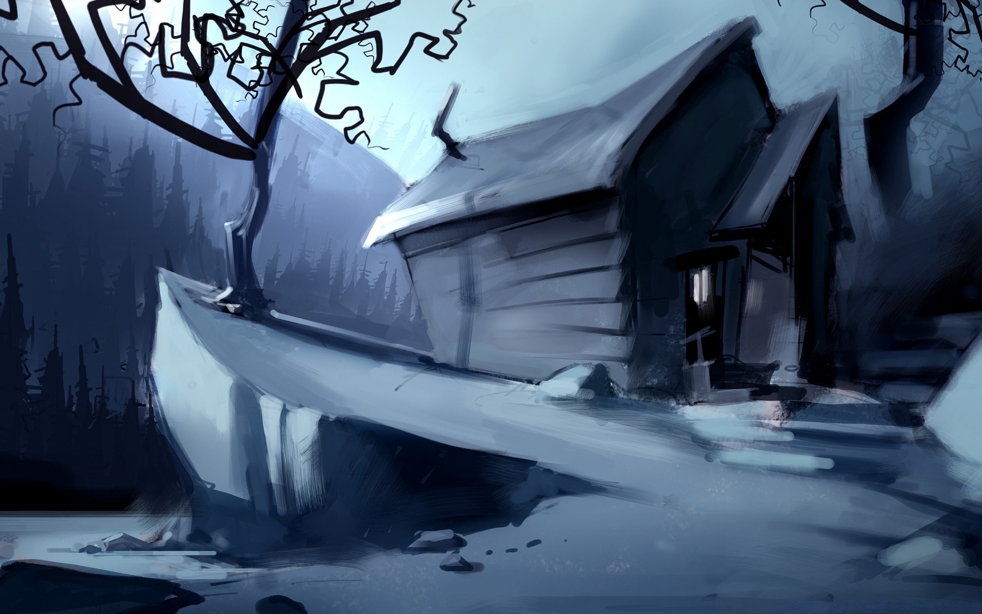 Casa de fantasía en una noche de nieve
