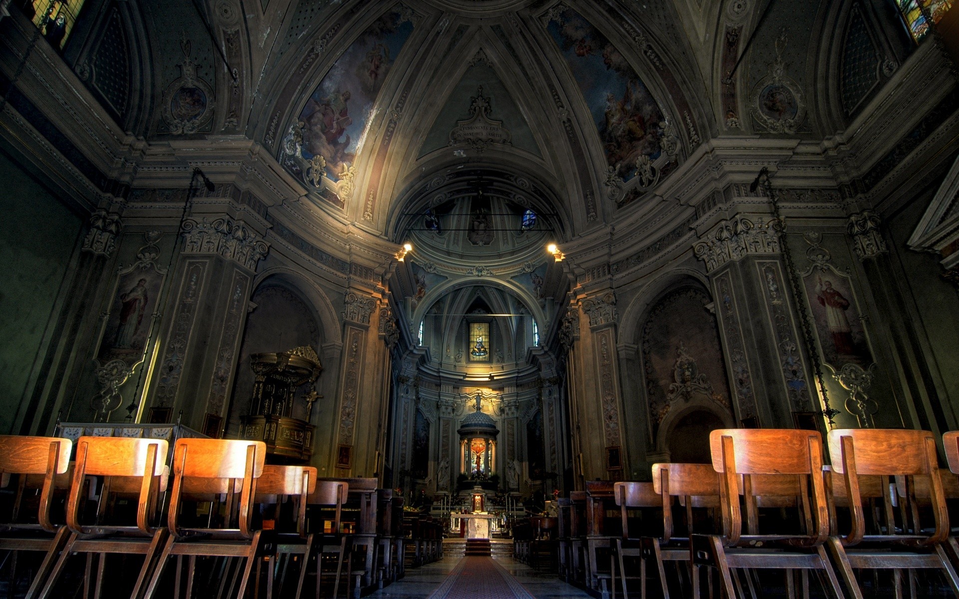 Iglesia con iluminación en tonos oscuros