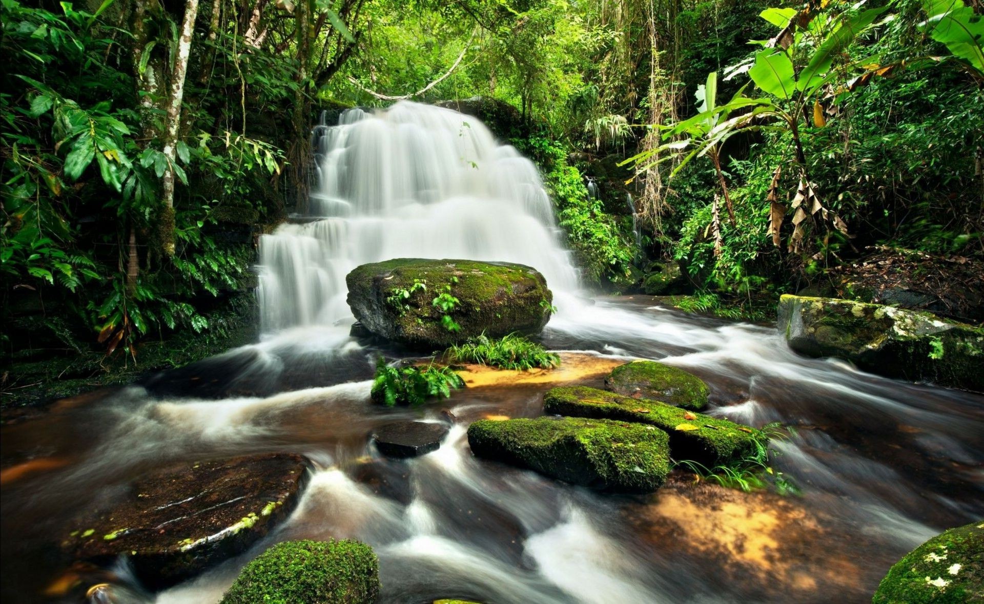 Múltiples corrientes de agua crean una cascada mágica