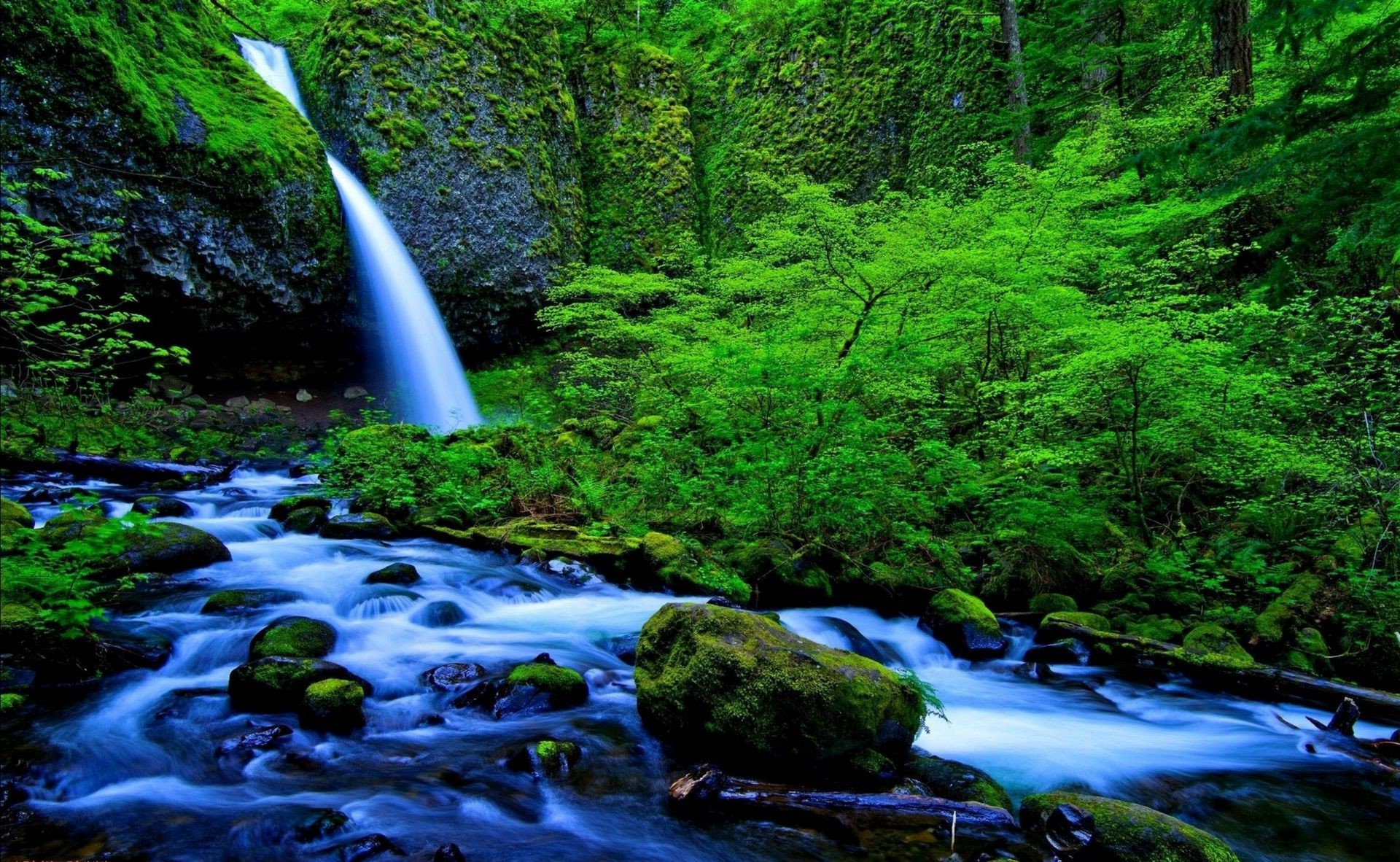 Paisaje de la naturaleza. Niebla sobre la cascada