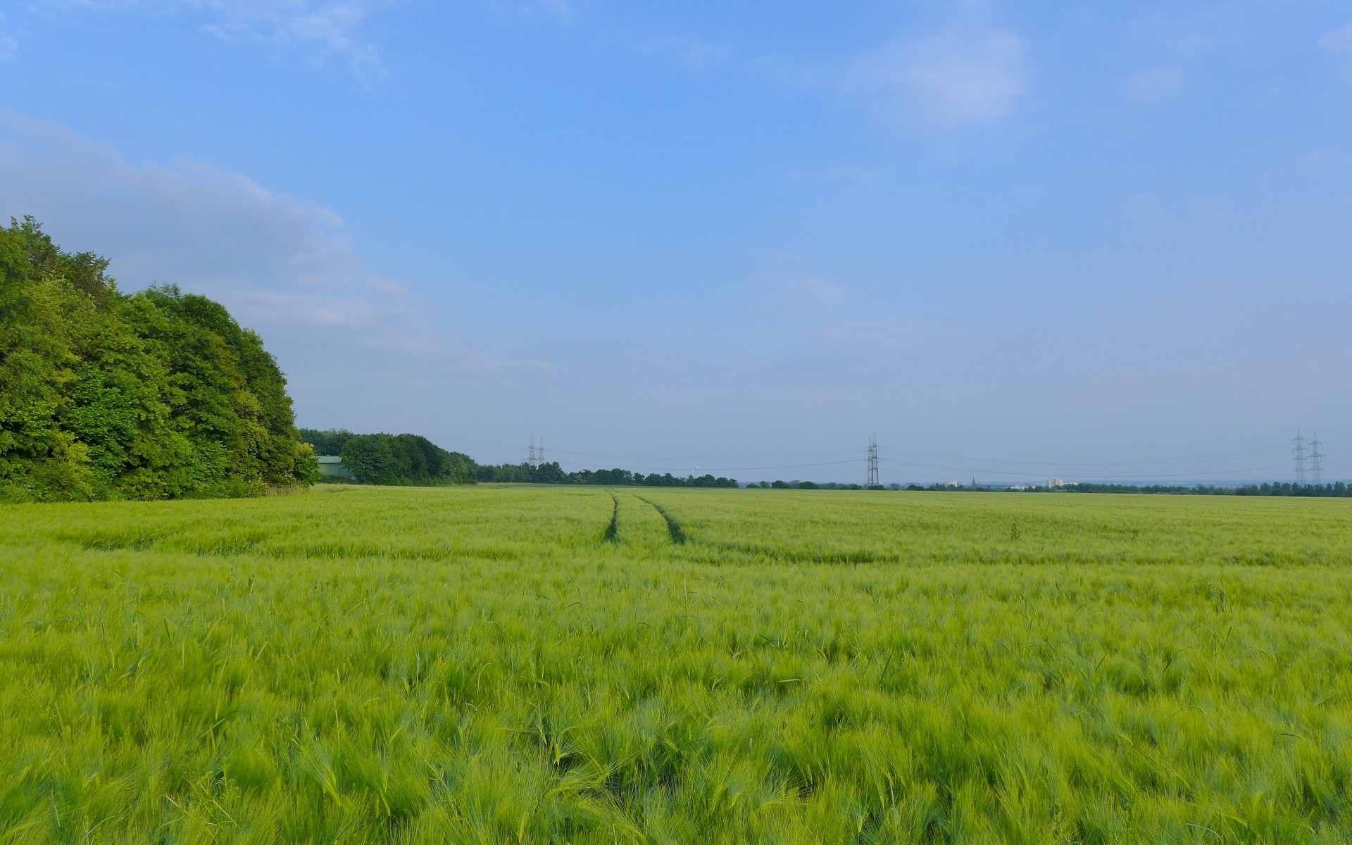 Un hombre y un niño se paran en el campo de spshenitsa y miran al cielo