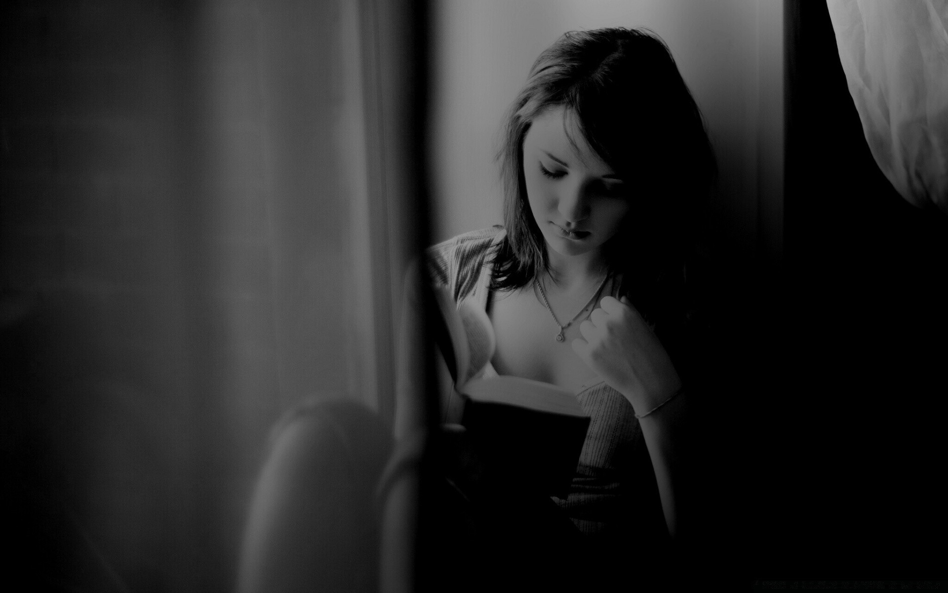 Hermosa chica en blanco y negro rendimiento