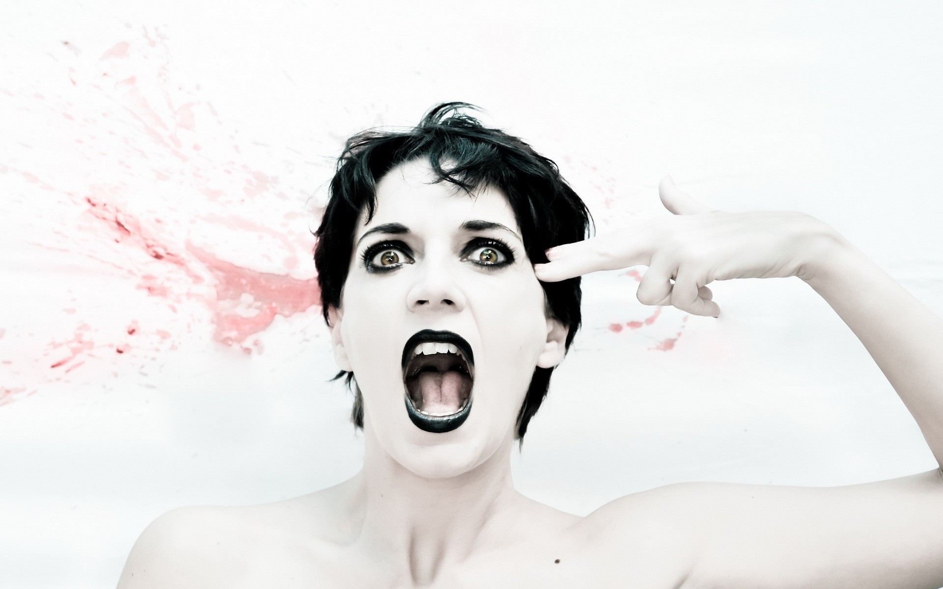 Chica con el pelo pintando los labios