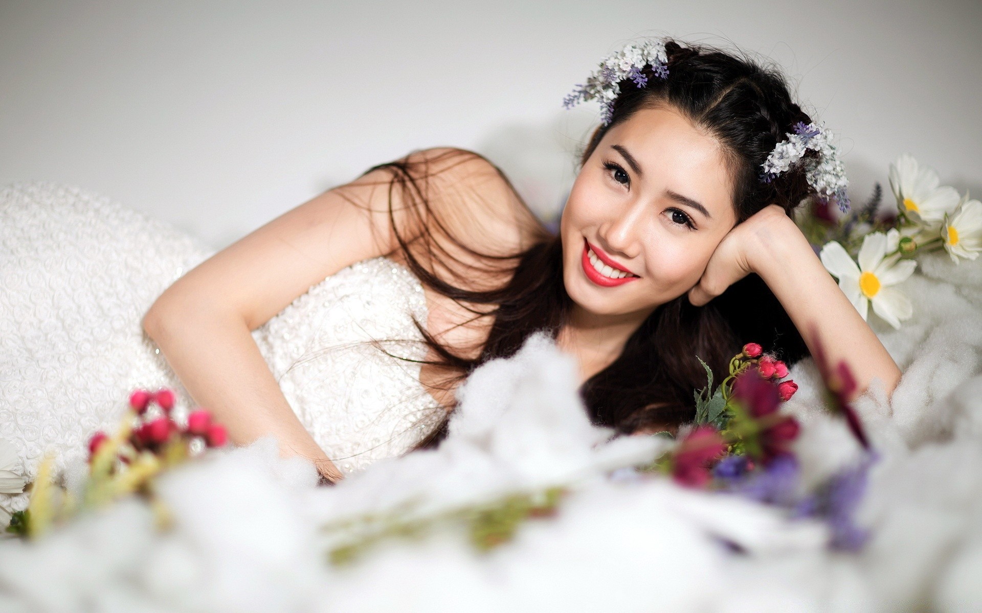 Chica con el pelo rubio en un fondo de color burdeosChica con el pelo rubio en un fondo de color Burdeos