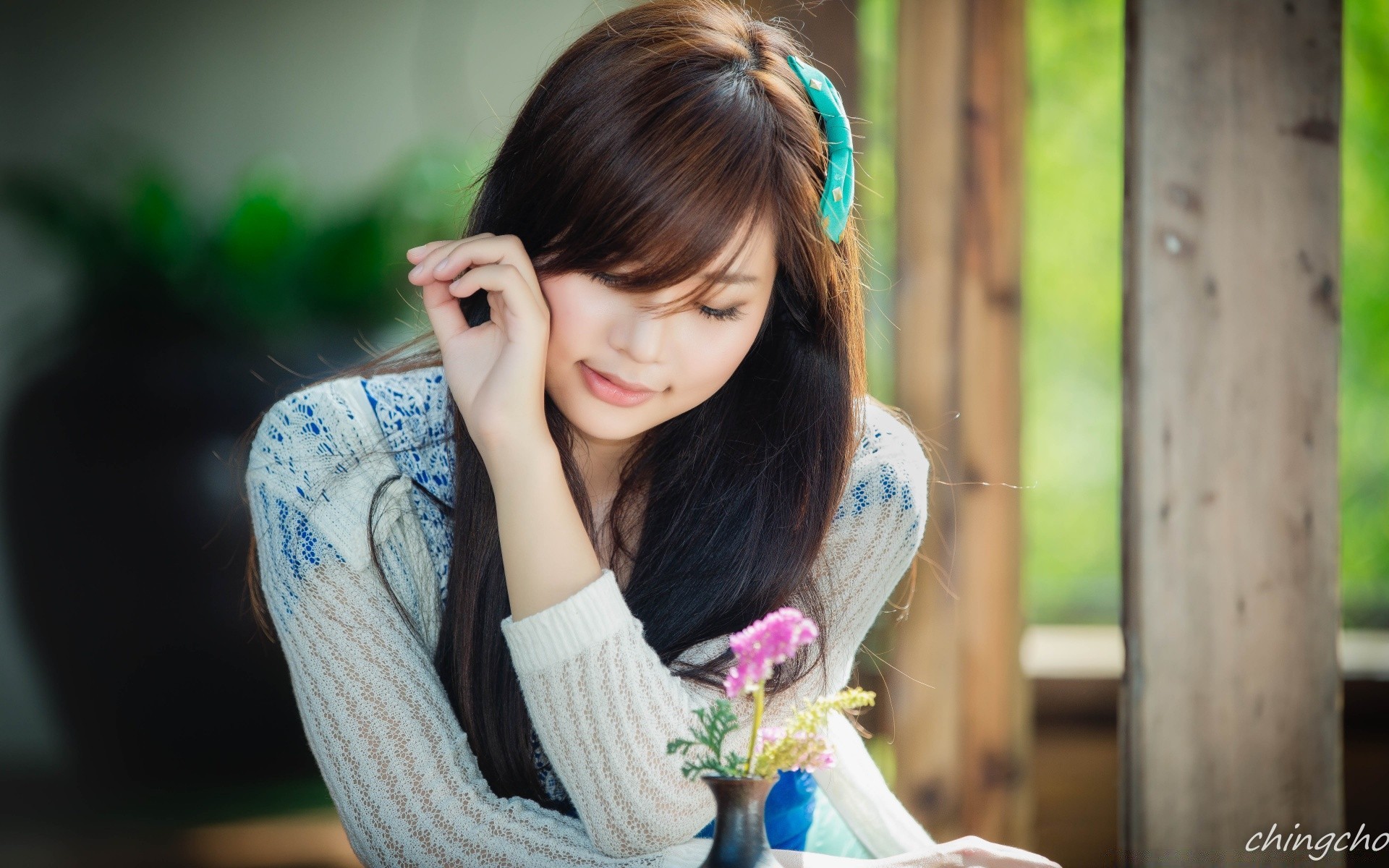 Paisaje con una chica saltando en el campo en el fondo de las montañas