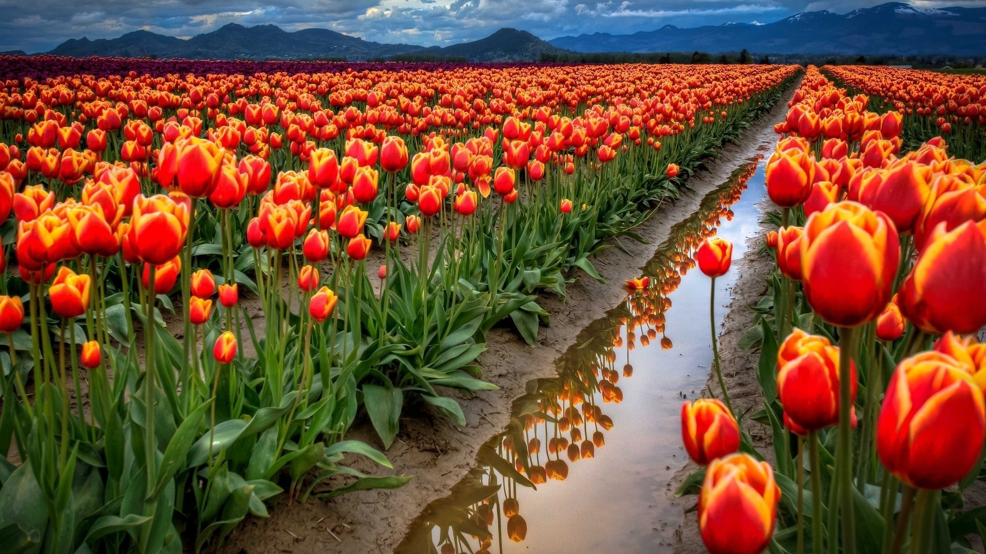Gran arboleda de hermosas chicas tulipanes