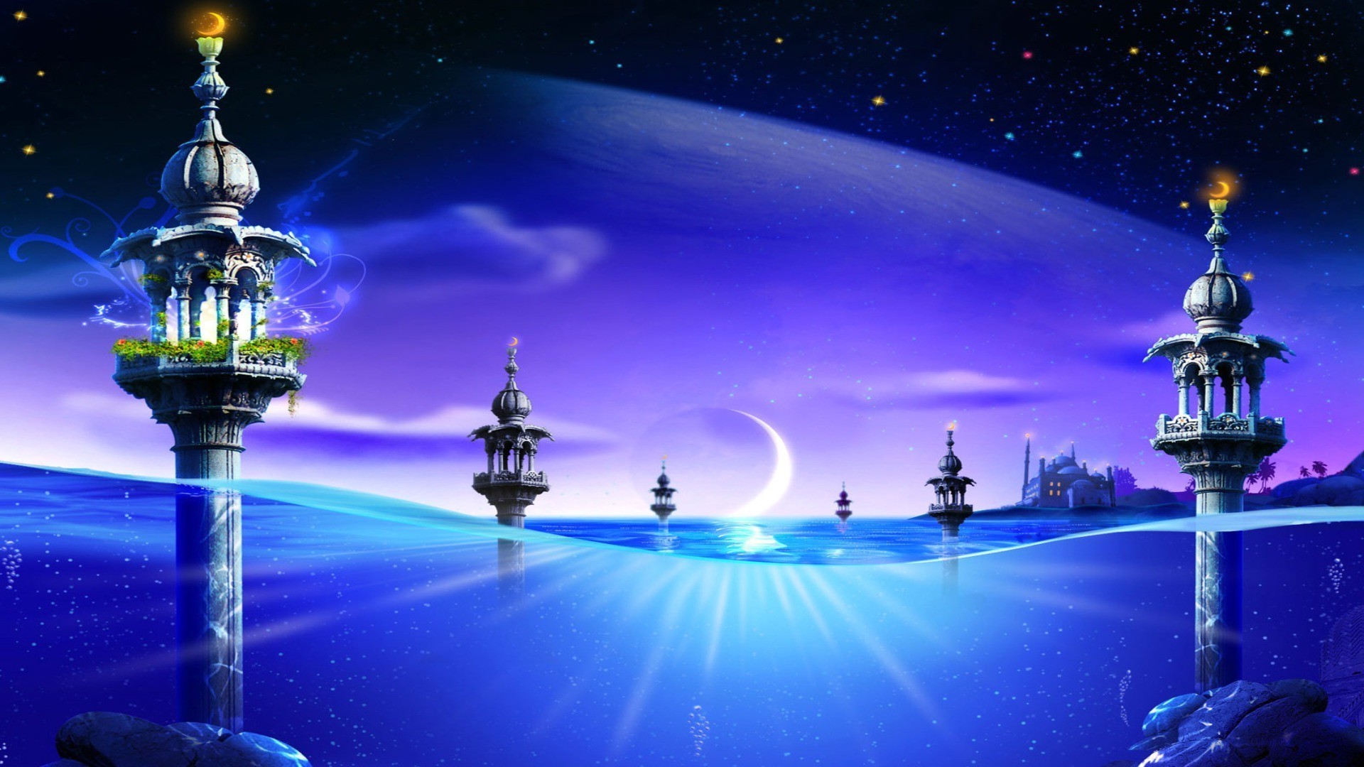 Las torres se elevan sobre el mar contra el cielo nocturno