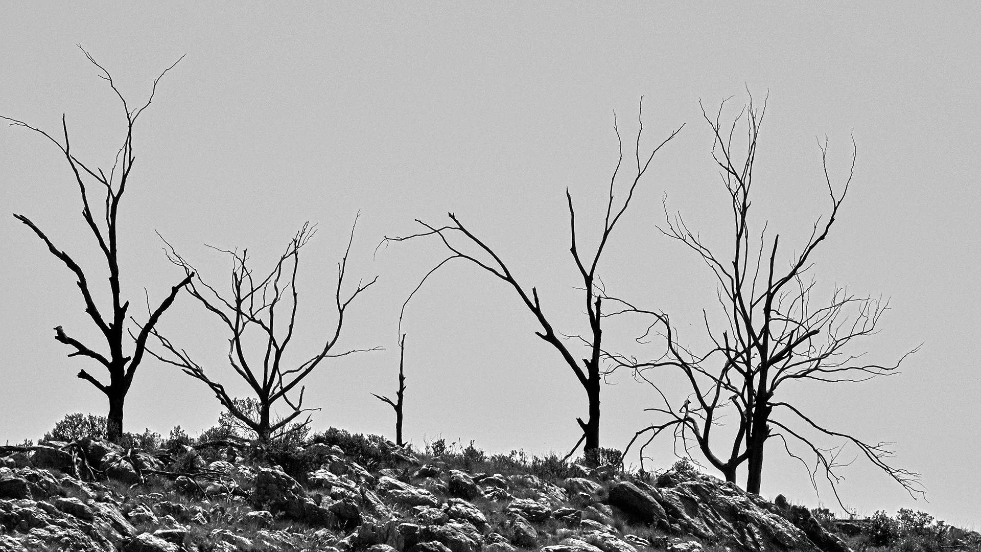 Imagen en blanco y negro de los árboles en invierno