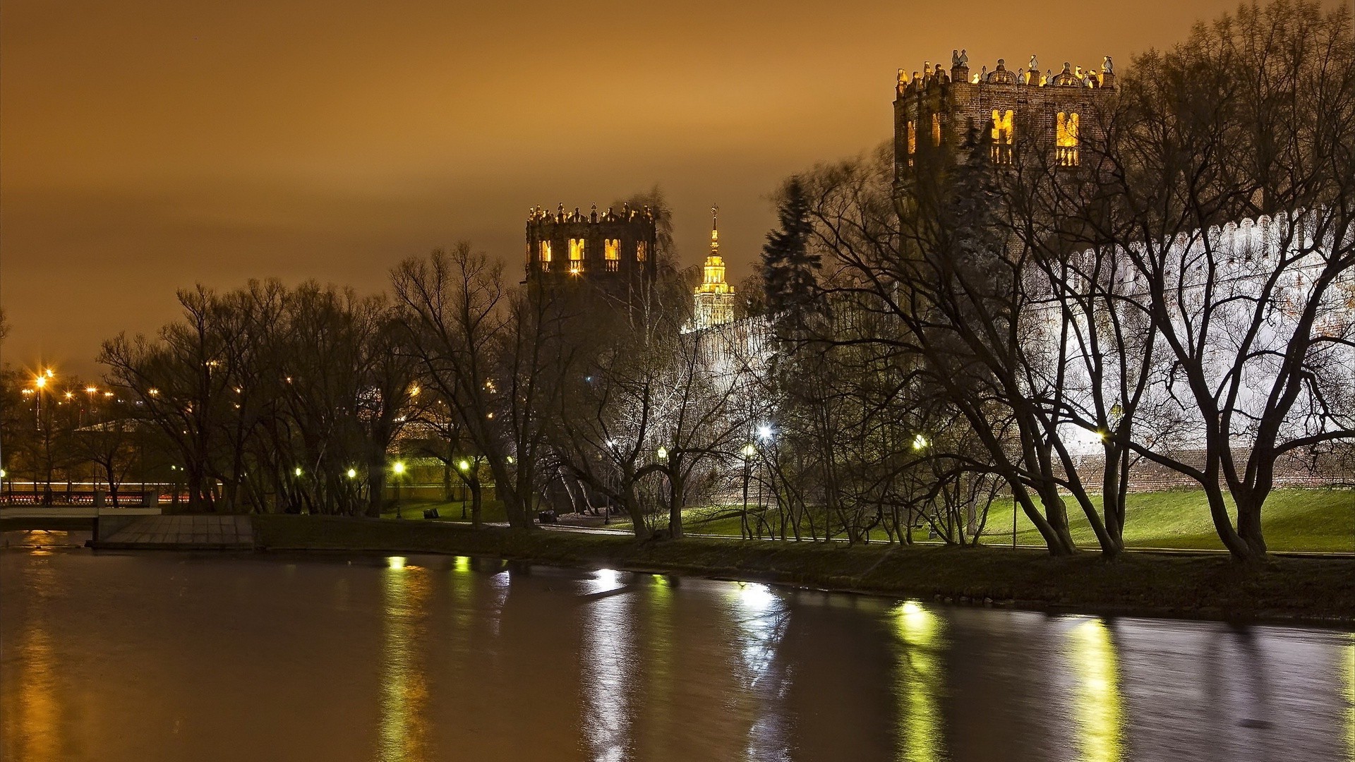 Puente iluminado, hermosa ciudad, río grande, agradable para viajar