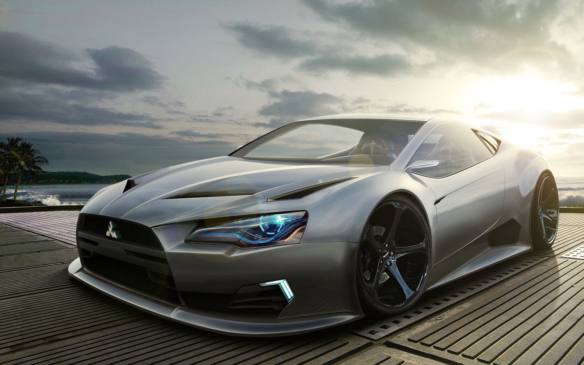 El coche deportivo negro en el interior del garaje de lujo está consagrado con lámparas
