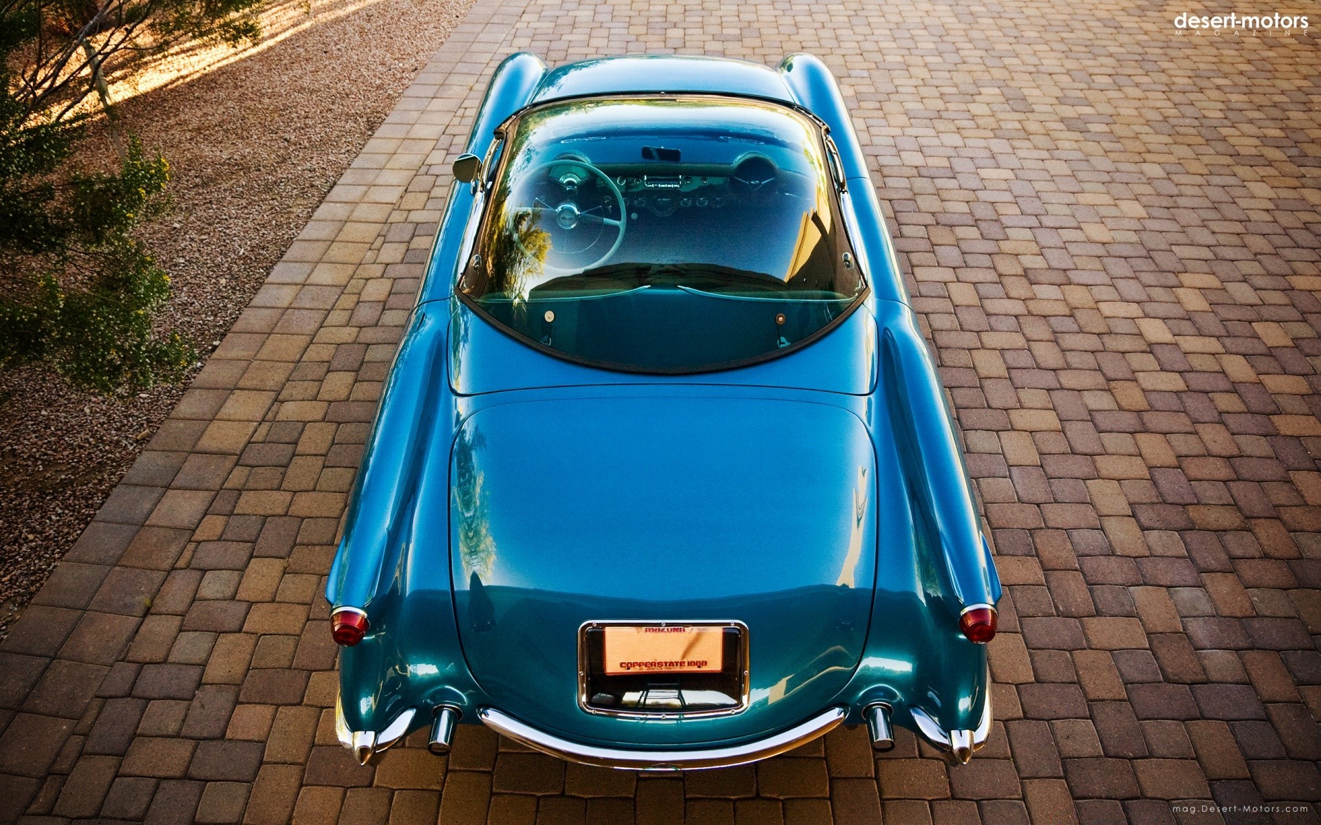 Coche retro azul en adoquines