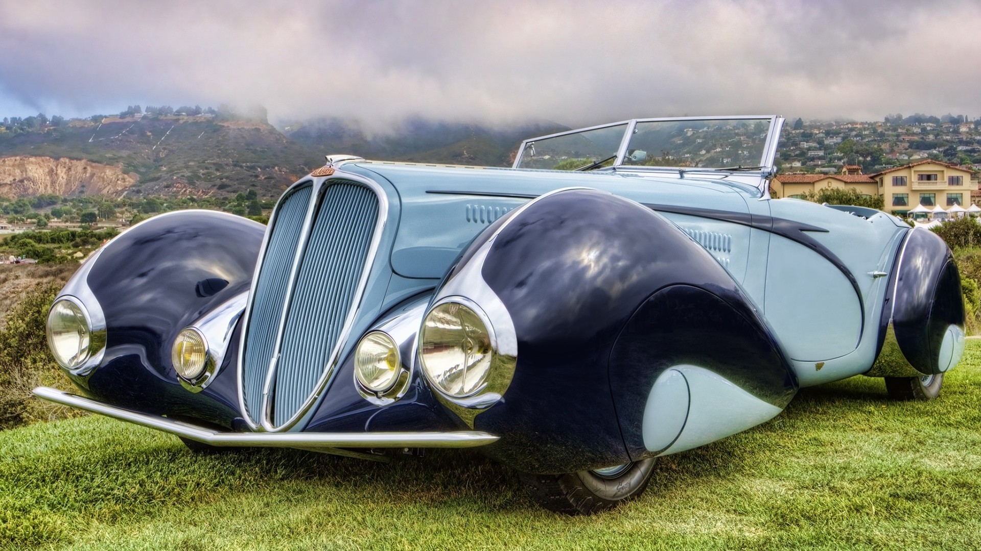 Coche deportivo en el fondo de los helicópteros