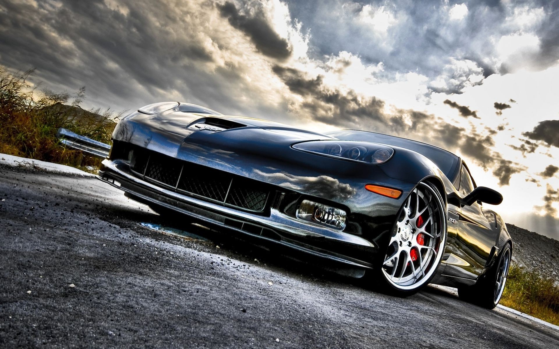 Coche deportivo y cerca de helicóptero negro