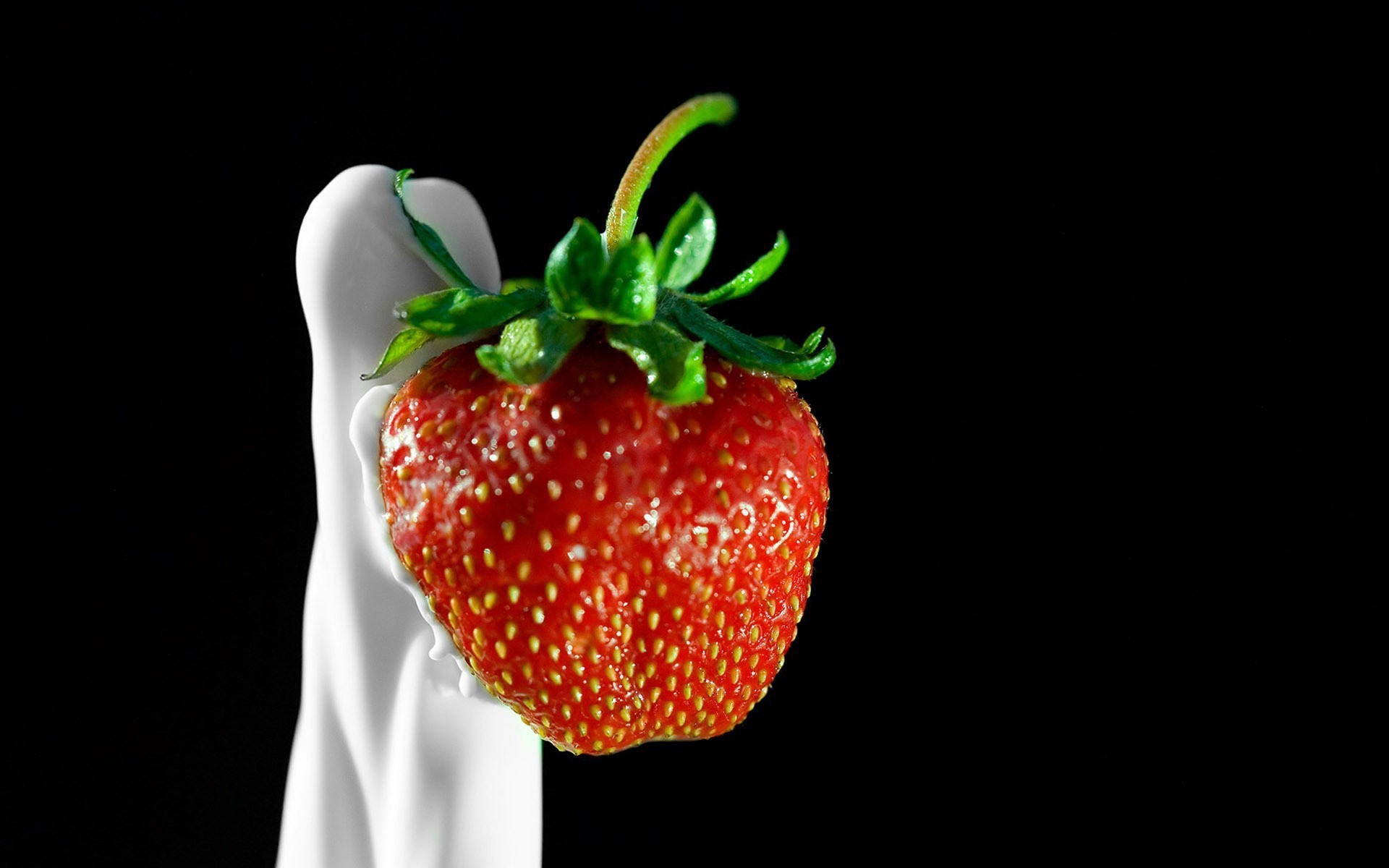 Fresas en crema de calidad HD sobre un fondo oscuro