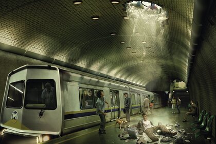 El héroe del juego farcry 4, posando en el fondo de un lago de montaña. en el que se refleja el cráneo humanoEl héroe del juego Farcry 4, posando en el fondo de un lago de montaña. en el que se refleja el cráneo humano