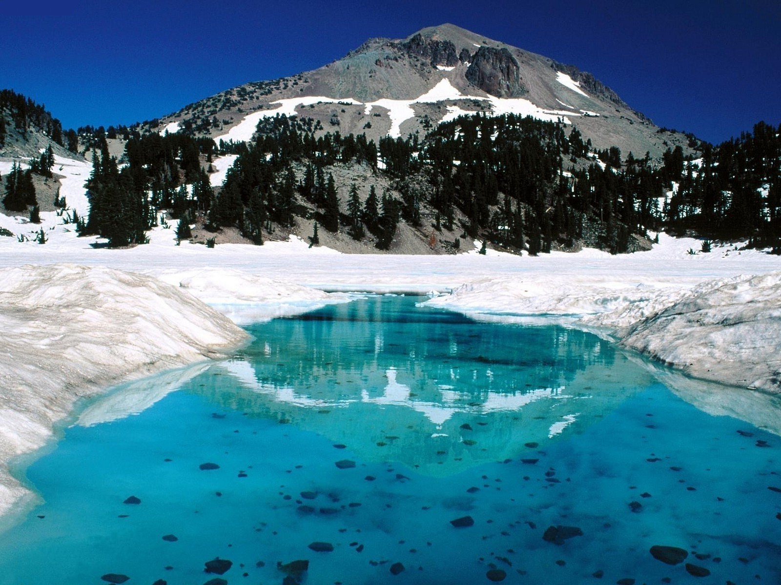 Puesta de sol detrás de las montañas bosque nubes de nieve