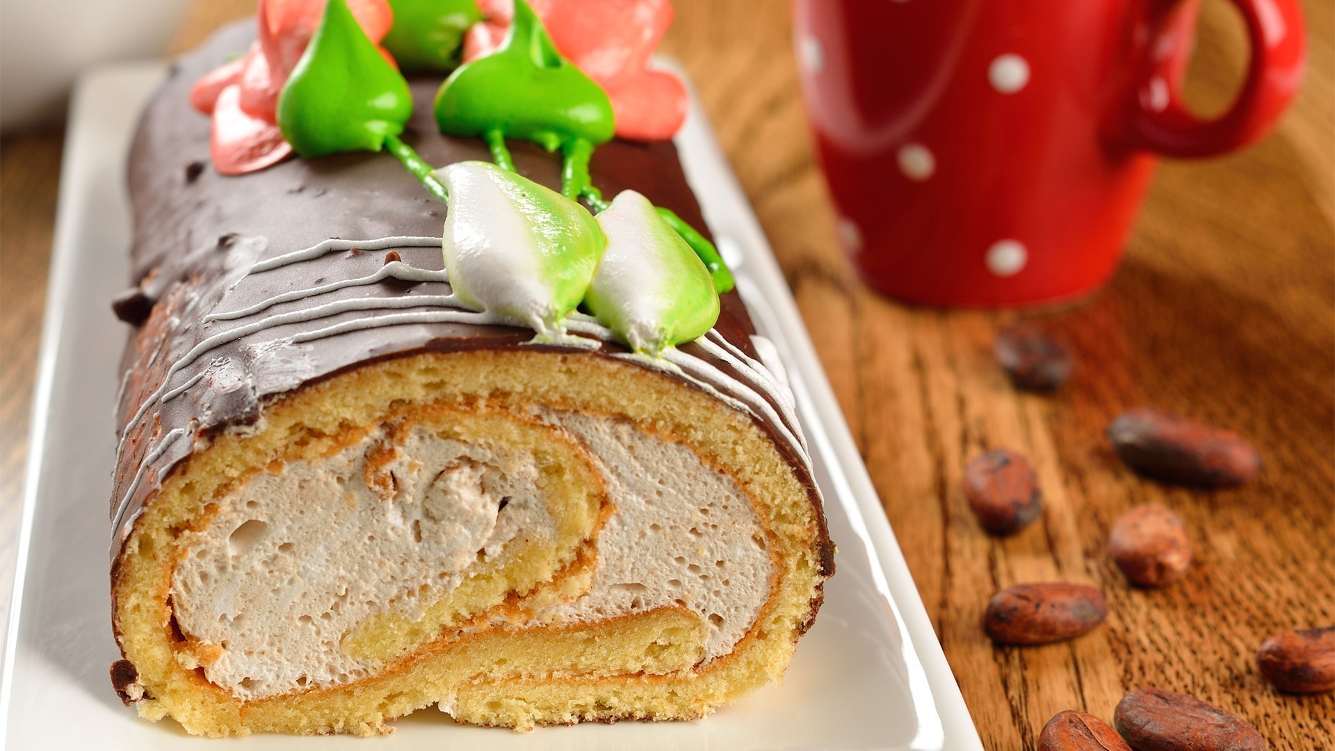 Mus dulce con nueces y rodajas de fresa en crema de vidrio