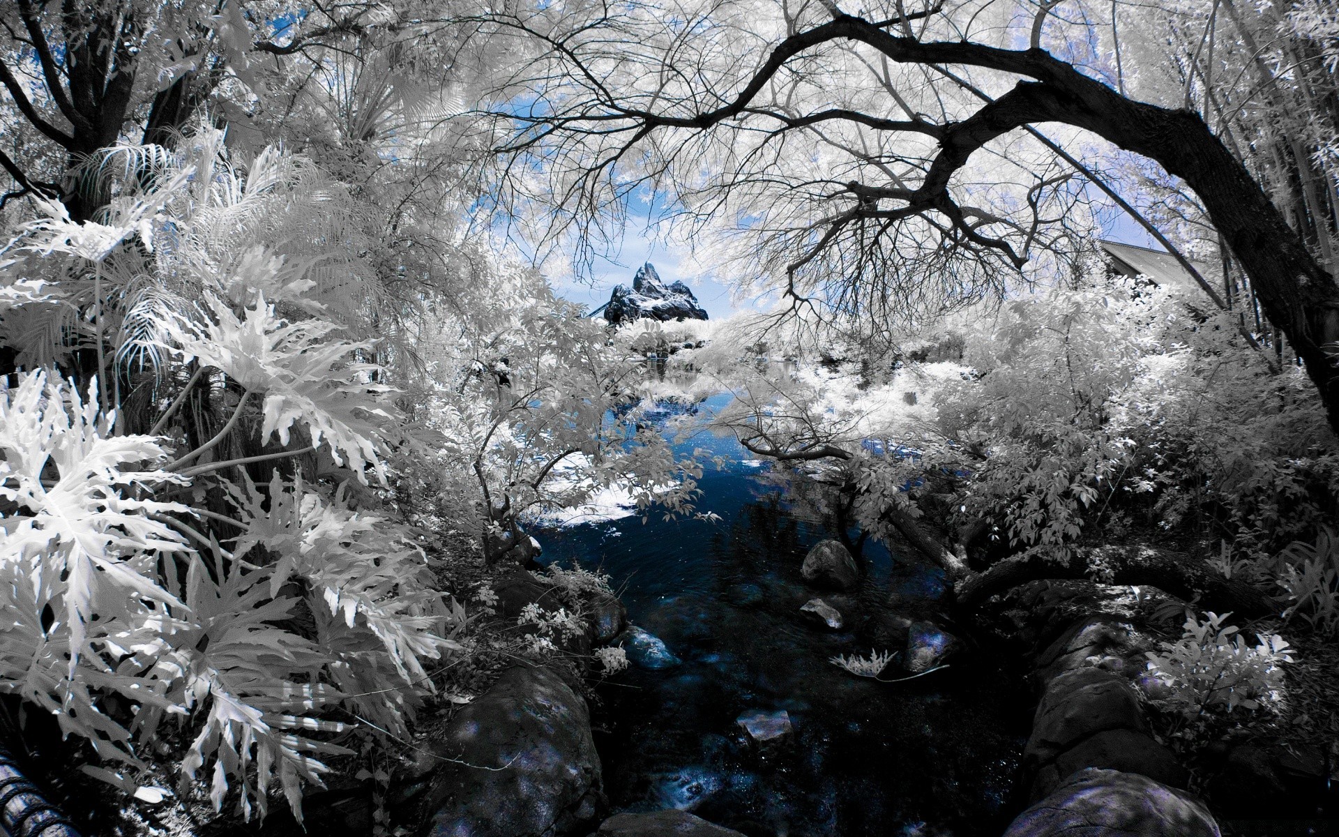 Montañas cubiertas de nieve en la luz del crepúsculo