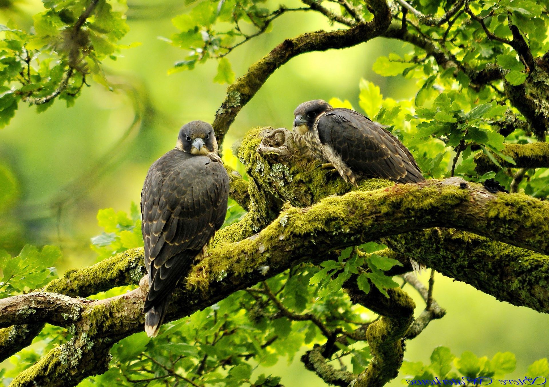 Las aves se sientan en la rama de un árbol cubierto de musgoLas aves se sientan en la rama de un árbol cubierto de musgo