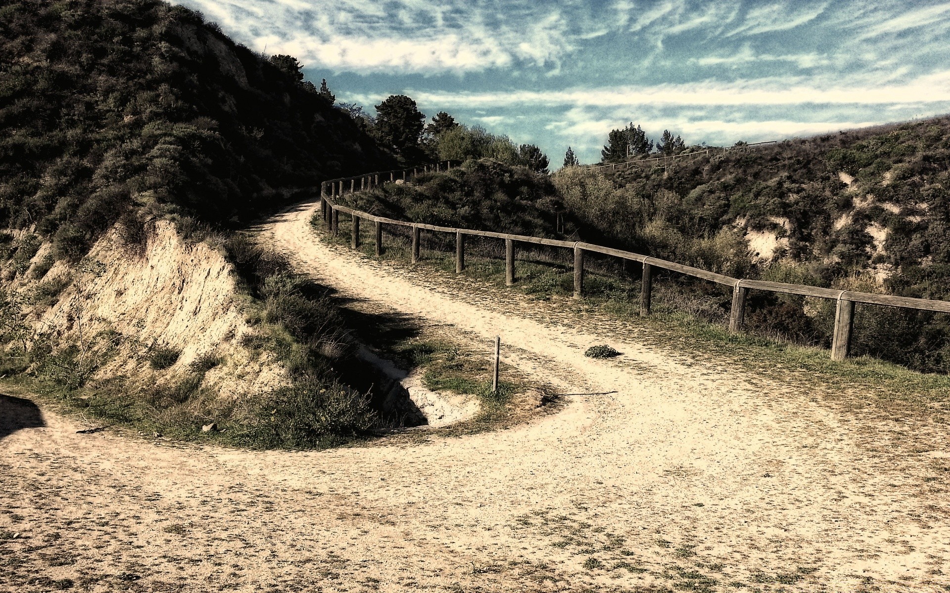 Foto de sendero de montaña con valla